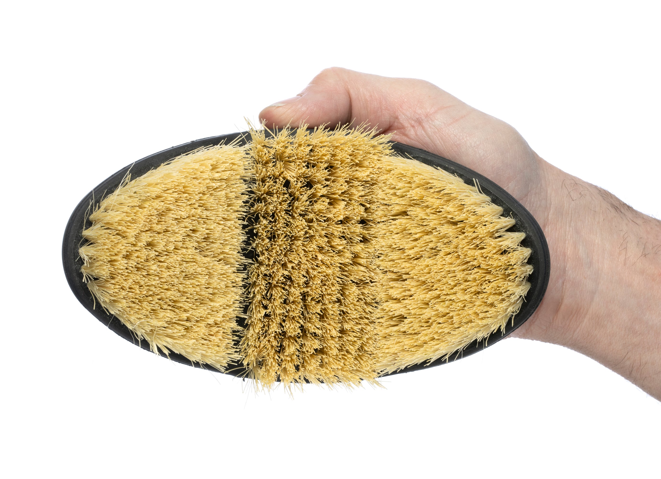 Coarser bristles on the LeMieux® Flexi Scrubbing Brush make getting tough dirt and stains out of your horse's coat a breeze. The flexible shape means you can reach almost every part of the horse's body, even cleaning those hard to get at places The ergonomic shape fits into the hand perfectly, reducing wrist strain while allowing you to have better grip when holding the brush. An elasticated strap guarantees a perfect fit.
