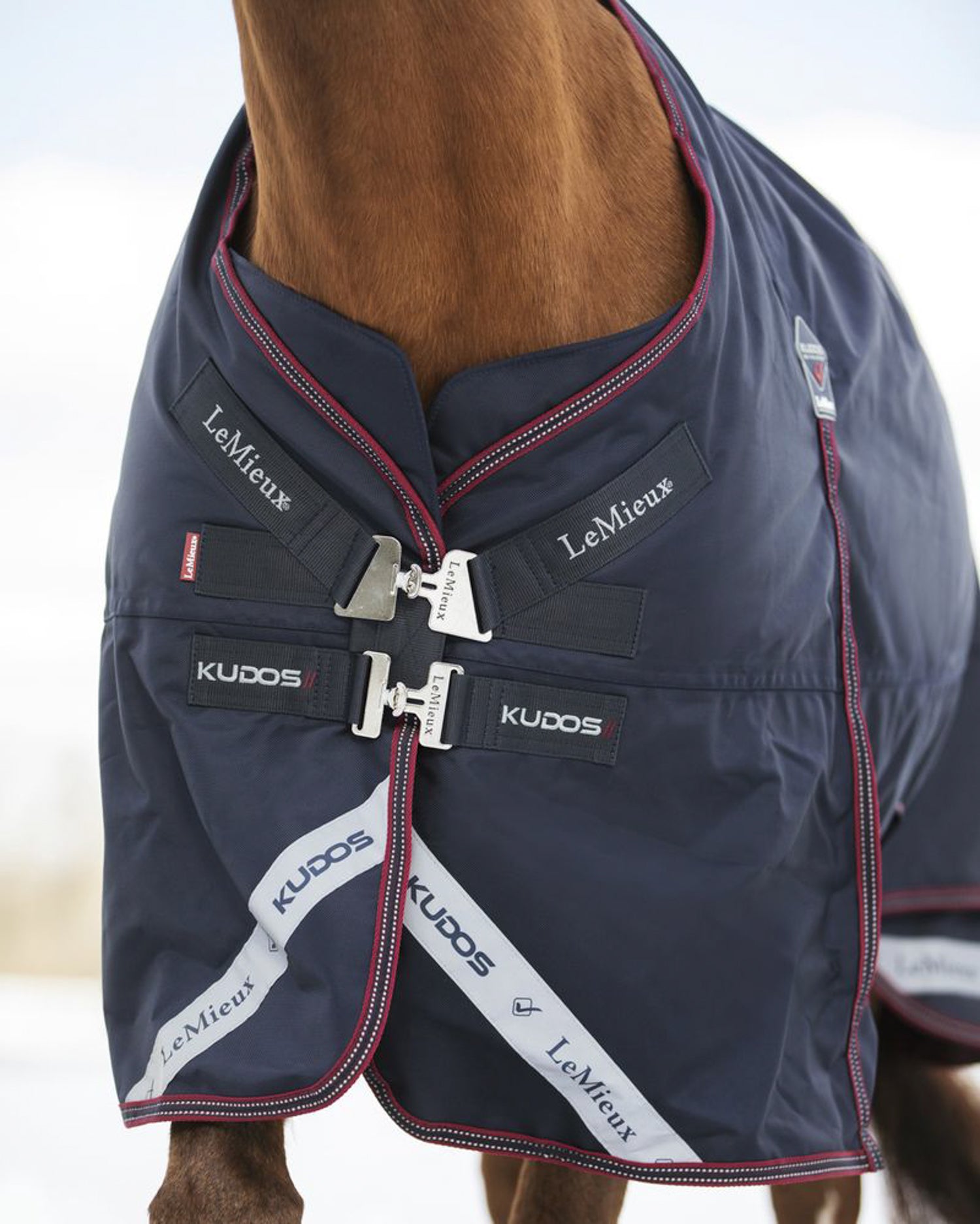 Made without a center seam to prevent leaks, the Kudos Rug has an innovative cut at the front. Along with front neck pads, the design provides the ultimate comfort and allows natural movement to be achieved, especially when the horse is eating from the ground.