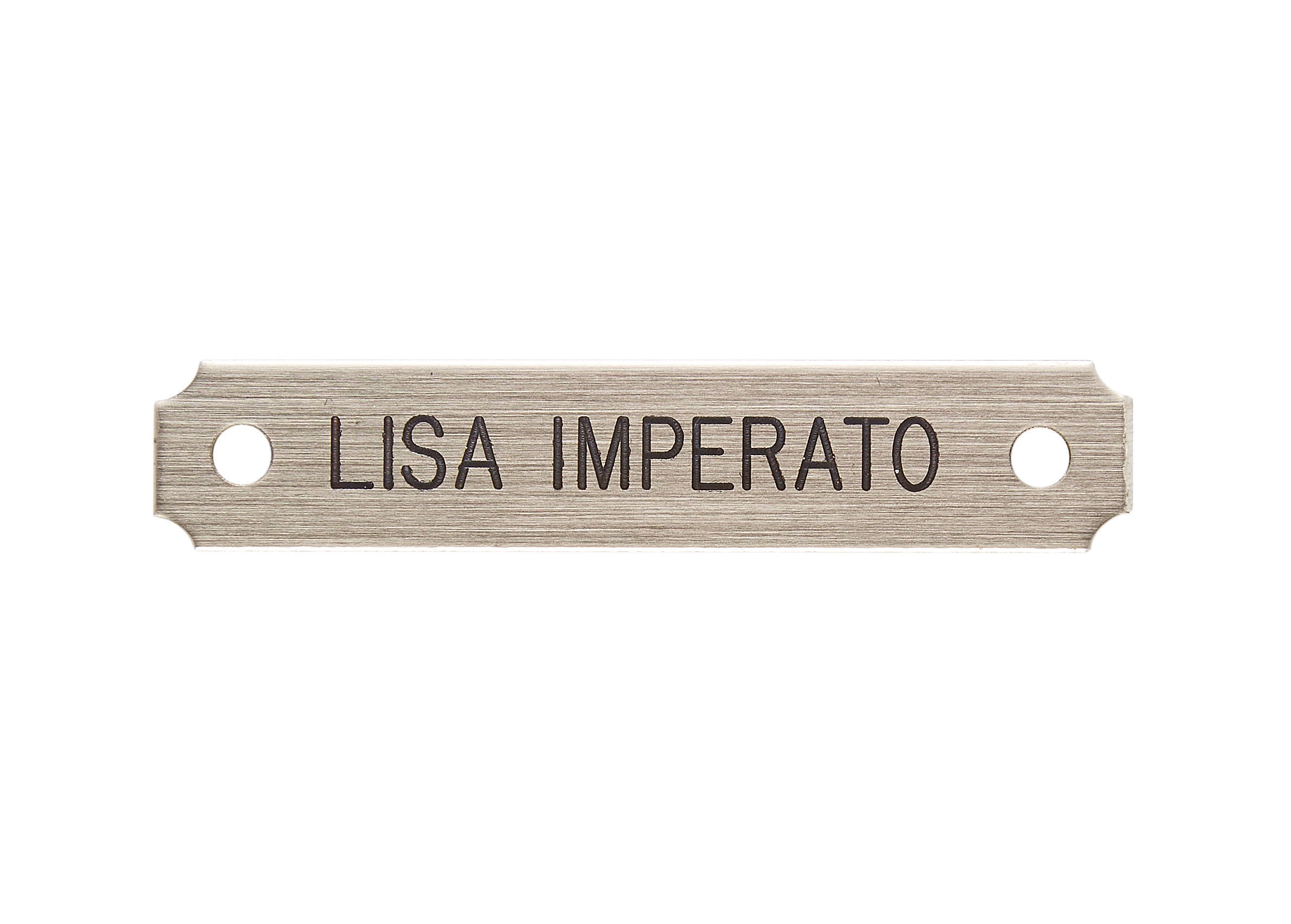 Our Notched Corner German Silver Bridle Nameplate is a classic label for your horse’s bridle. The nameplate will be engraved in USA in your choice Block, Old English, Roman or Script letters with your horse’s name, your name or your farm’s name. Predrilled 5/32" holes fit rivets for attachment. Two sizes of rivets are included to allow you to attach the nameplate to either a padded or flat leather bridle. Personalized items are not returnable.