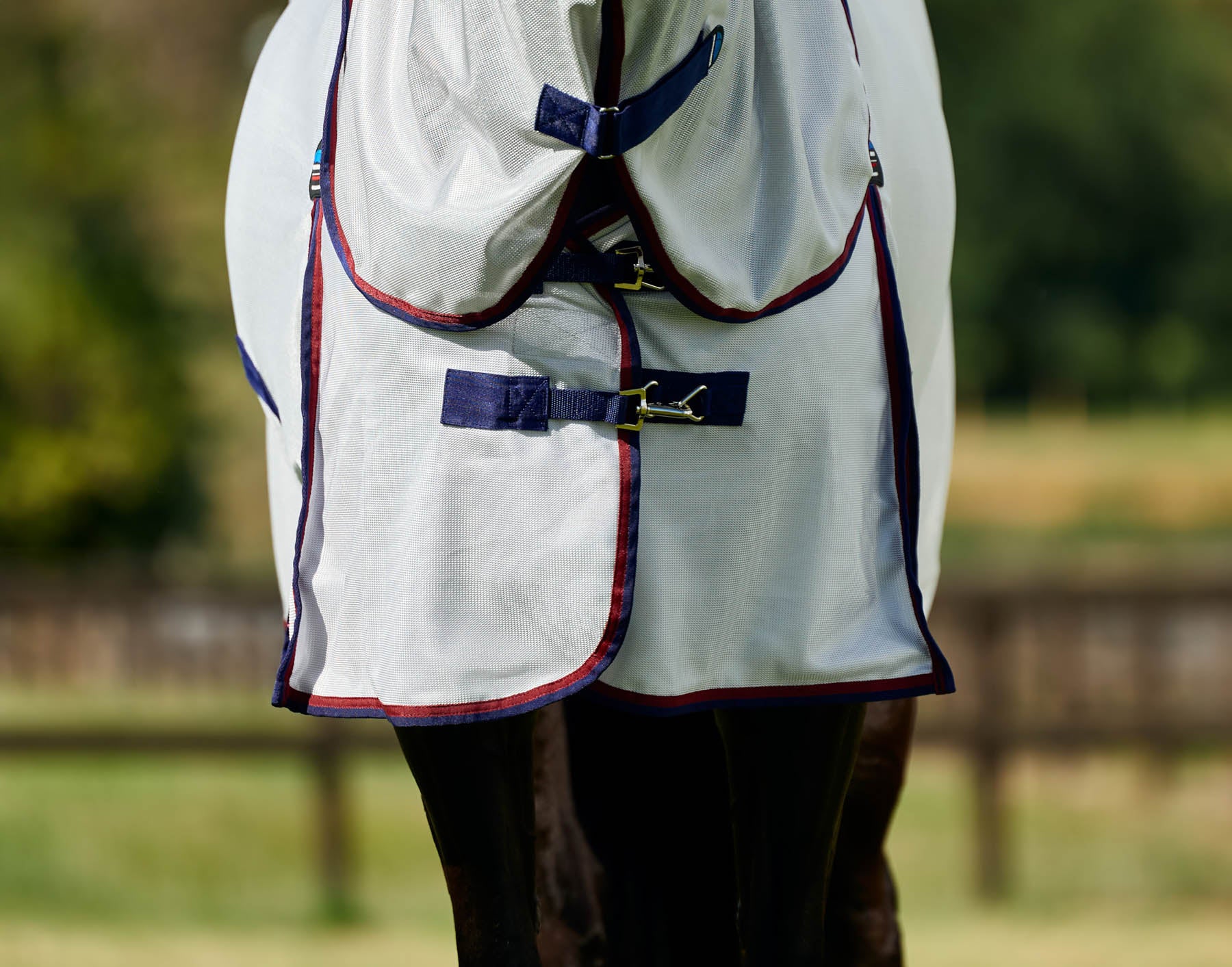 Made from a durable, soft 100% polyester mesh that provides continuous airflow and effective insect protection without trapping heat. With 75% UV protection, it helps shield your horse’s coat from sun bleaching and skin irritation.