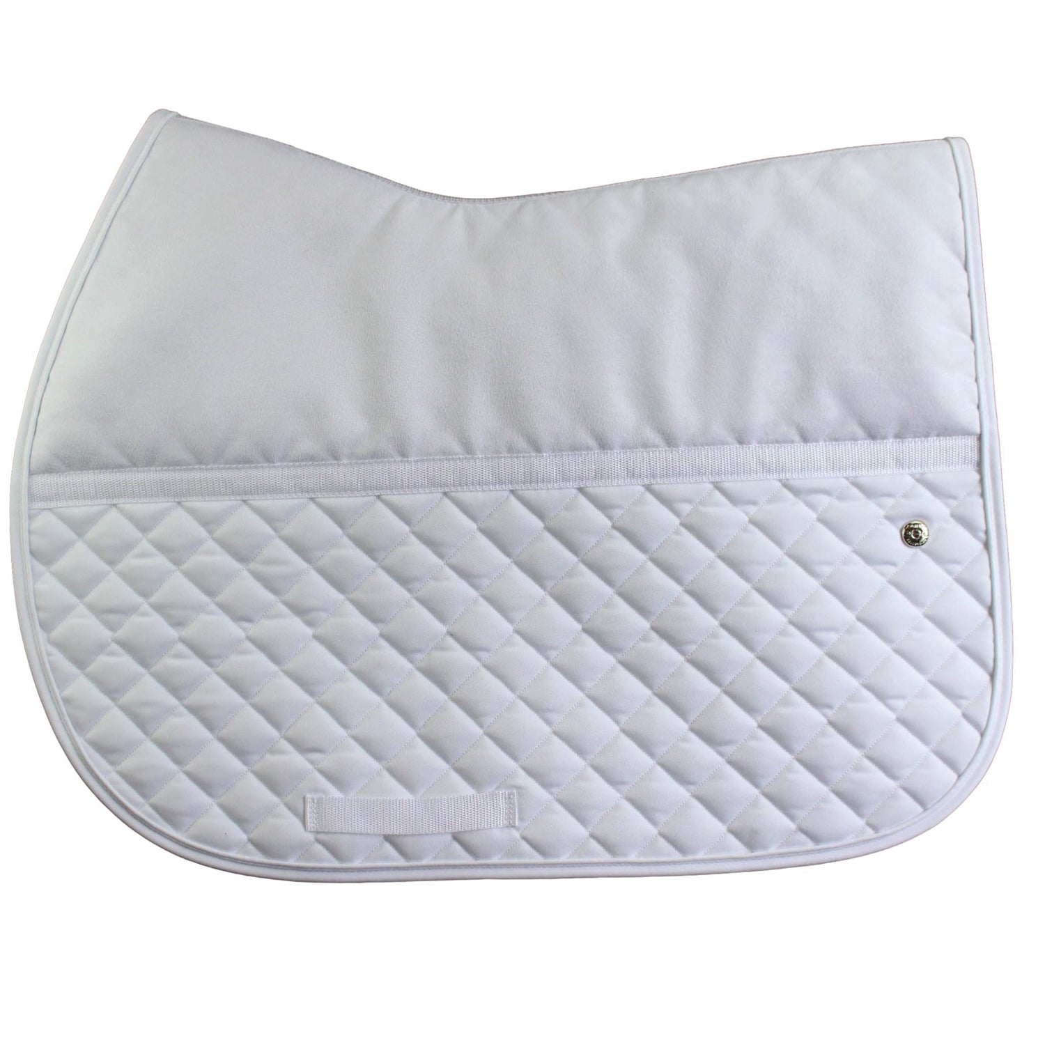 Achieve extended comfort with the Ogilvy Classic Friction Free Jump Pad. Friction Free technology stabilizes and transfers movement to keep horse and rider in sync all day long. Complete with top-line design, this pad sits comfortable at the base of the horses withers and sits smoothly against their back for optimum comfort. A larger, more rounded contoured fit accomodates the forward flaps of a jump saddle. Moisture-wicking and anti-slip, the poly cotton twill, combined with quick-dry hollow core fiber, dries quickly and discourages the growth of bacteria to keep the pads fresh for longer. Stain-resistance allows riders to stay focused on the ring and off the risk of wear and tear that comes with repeated use. When its time for a refresh, simply follow care instructions and give the pad a wash.