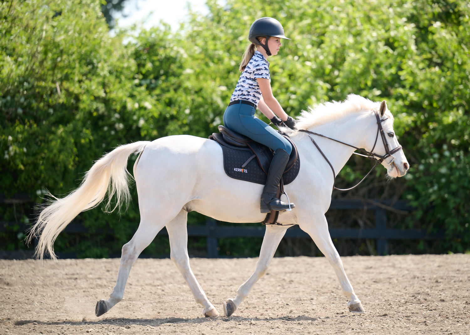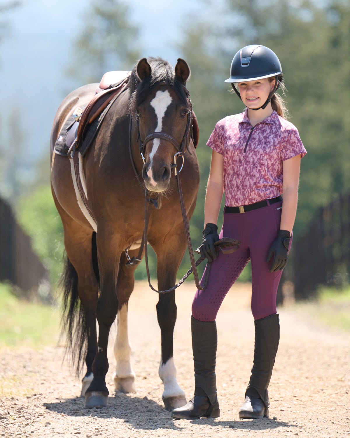 Pony-loving prints disguise dust and dirt, the high collar shields little necks from the sun, and the eight-inch zip allows for extra airflow. UPF+30 keeps young riders protected all day long. For head-to-toe equine style, pair with matching Kids Performance Tights.
