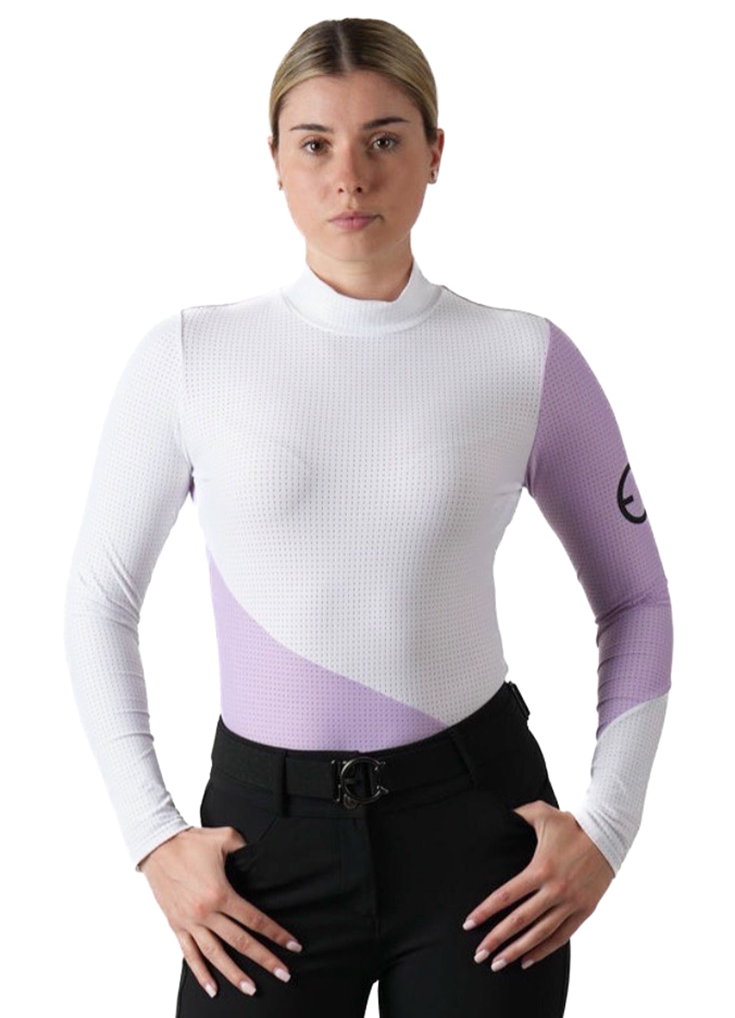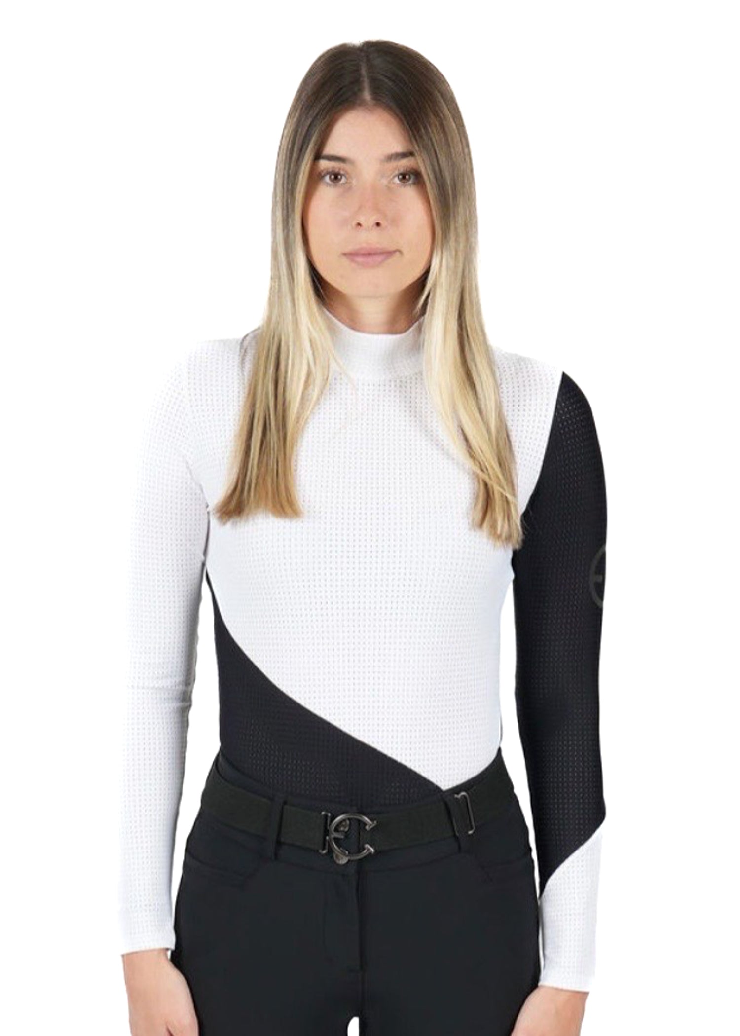 Created for the rider to look sophisticated, the Equestrian Club Bella Turtleneq is professional and EQchic. Beige and black combination looks simple yet elegant at the same time and fulfills every equestrian need. The superior comfort, sun protection and sweat wicking material make it an essential. Perforated design is super light and airy and keeps you cool and confident during competition.