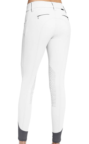 Elegant and functional, the GhoDho Tinley Pro Knee-Patch Breech creates an ultra figure flattering fit with seaming and piping details. The Aubrie Pro Breech features imported Meryl® technical fabric for maximum comfort with water and stain resistant properties. Mid-rise styling with 2" belt loops, a silicone waistband to keep shirts from riding up, two front pockets with embroidered detailing and faux back pocket zippers. Grippy geometric silicone knee patches for an enhanced grip and a soft flexible knit leg cuff for a form fitting feel under your riding boots. Signature logo embroidery is a finishing touch.
