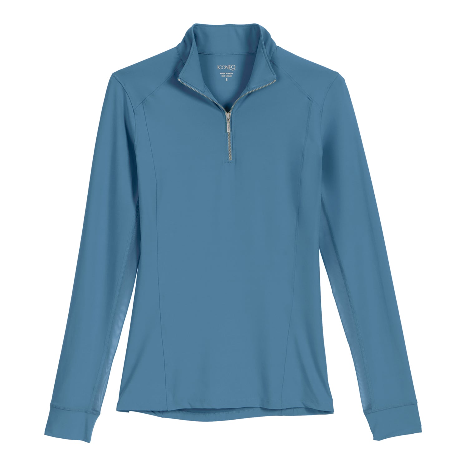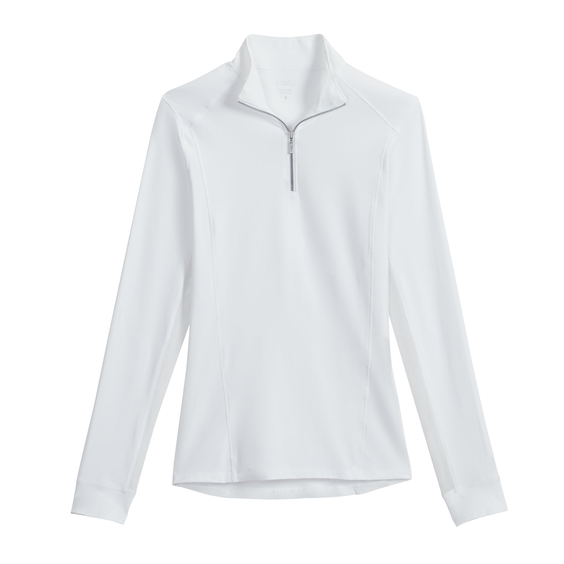 - Mock collar and quarter zipper.