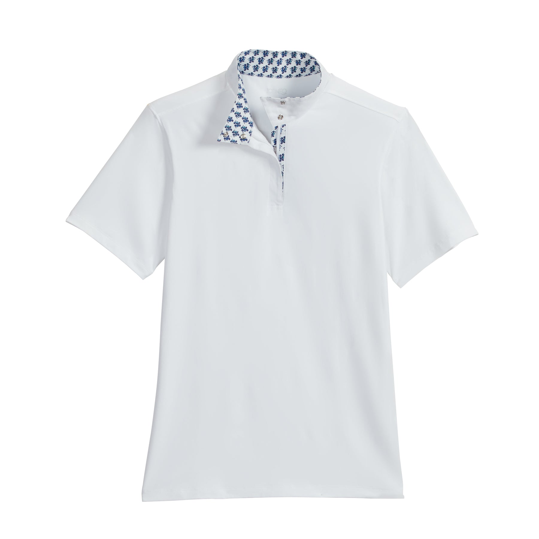 - Patterned trim inside the snap collar and placket.