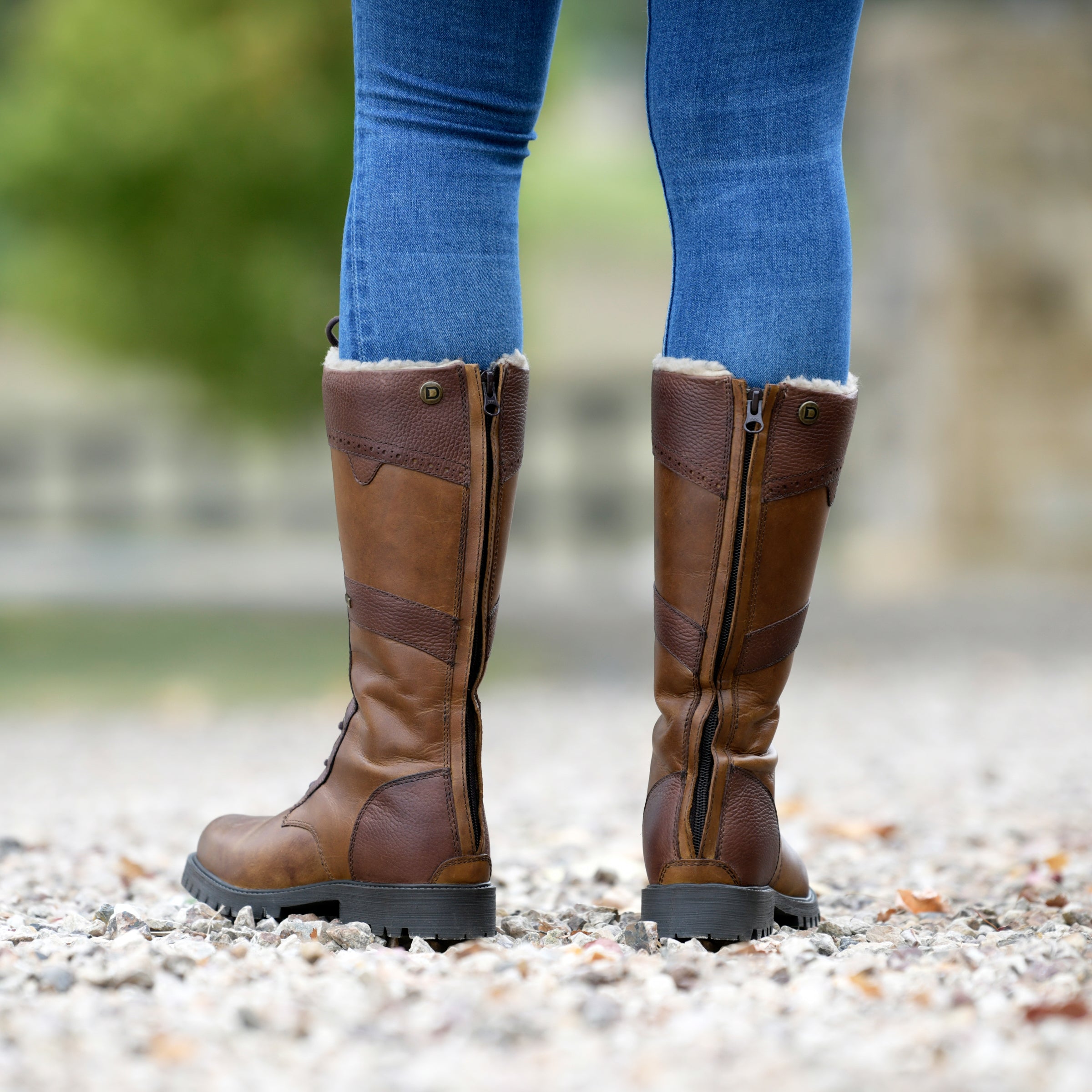 - Leather with synthetic wool lining.