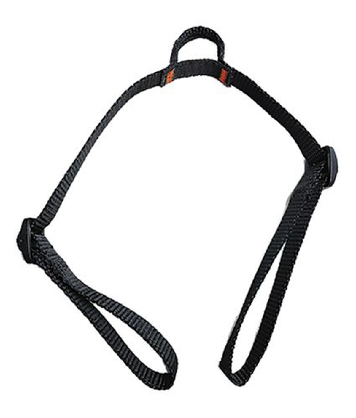 Freejump® Saddle Strap. A Y type saddle strap. Individual user is responsible for adjusting the length of the saddle strap and installing it on the saddle, as well as hooking to the carabiner of the key ball leash/lanyard to the saddle every time he or she rides.
