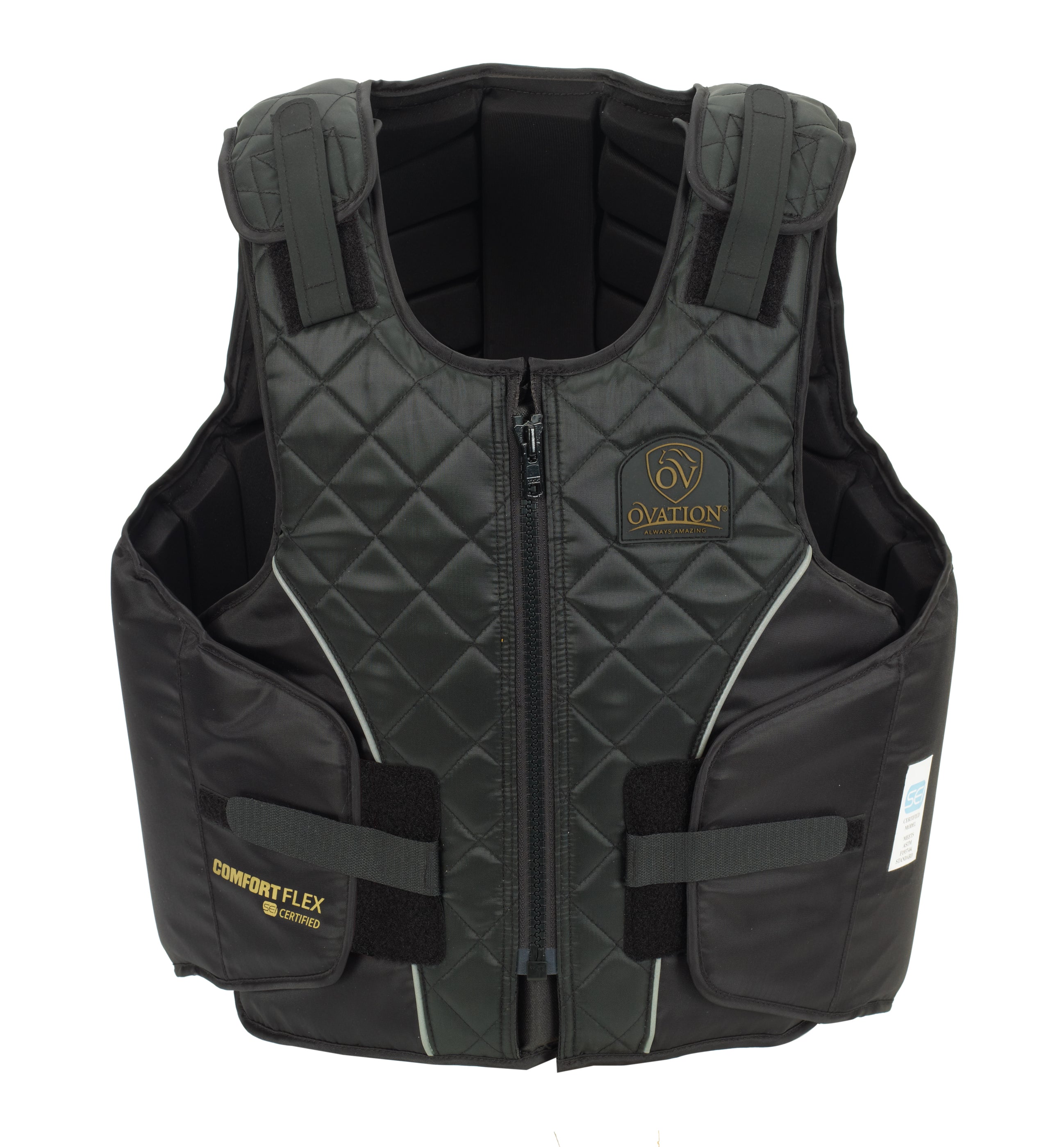The Ovation® Children’s ComfortFlex Body Protector offers a comfortable, non-restrictive fit that should not compromise the rider’s abilities in the saddle. Body protectors offer equestrians a degree of protection from impacts suffered because of horse sport activities by reducing the severity of high levels of energy dissipation often experienced during a fall.