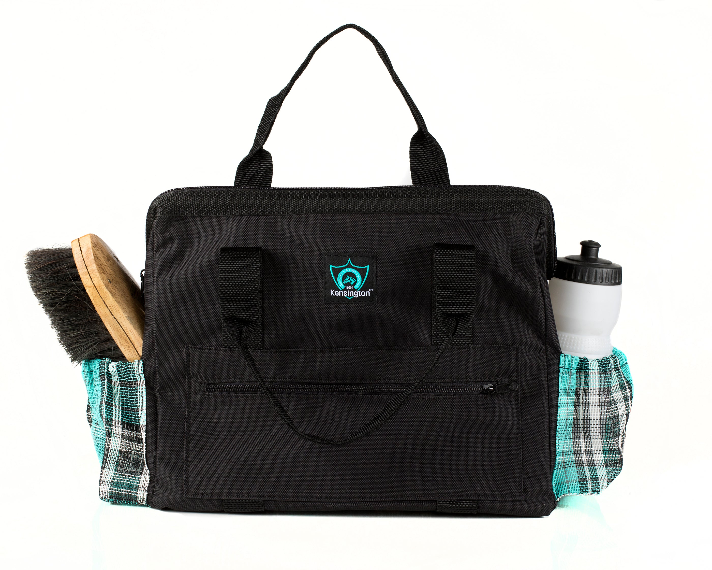 The Kensington™ All Around Zippered Show Tote is a handy bag inspired by an old-fashioned doctor-style bag with zippered top closure. Made of ballistic nylon for durability, this equestrian tote features a Textilene® mesh bottom that allows for easy cleaning: