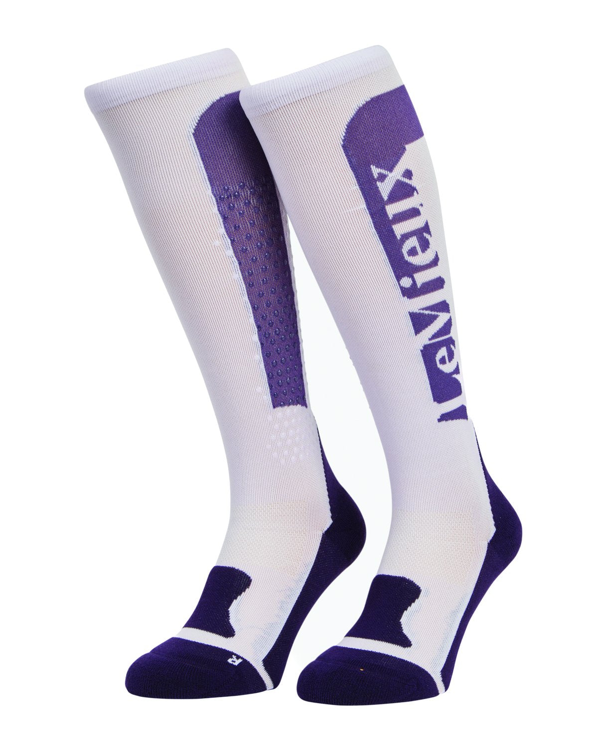 LeMieux® Silicone Socks are a technical knit performance sock with an updated footbed design! Padded heel and toe with arch support adds extra comfort and diamond print silicone grip on inside calf provides great grip when riding. Designed for maximum comfort and peak performance, these technical performance socks are the pinnacle of any riding wardrobe. Versatile and easy to wear, pull them on over breeches or wear them with boots, jeans, leggings – you name it.