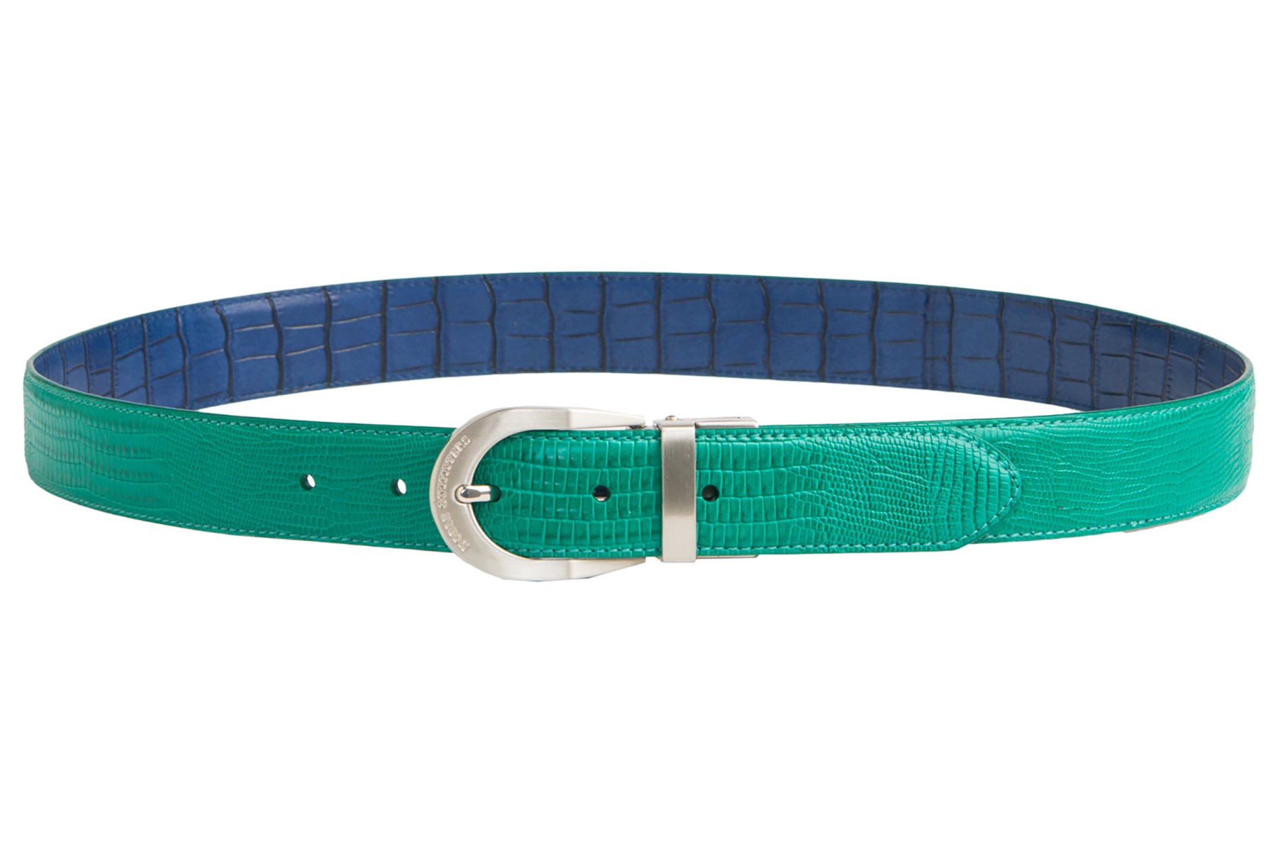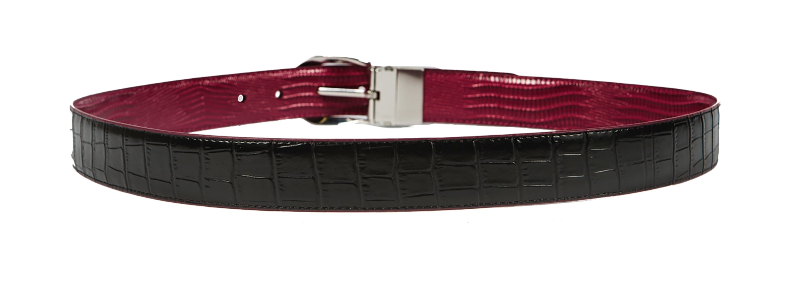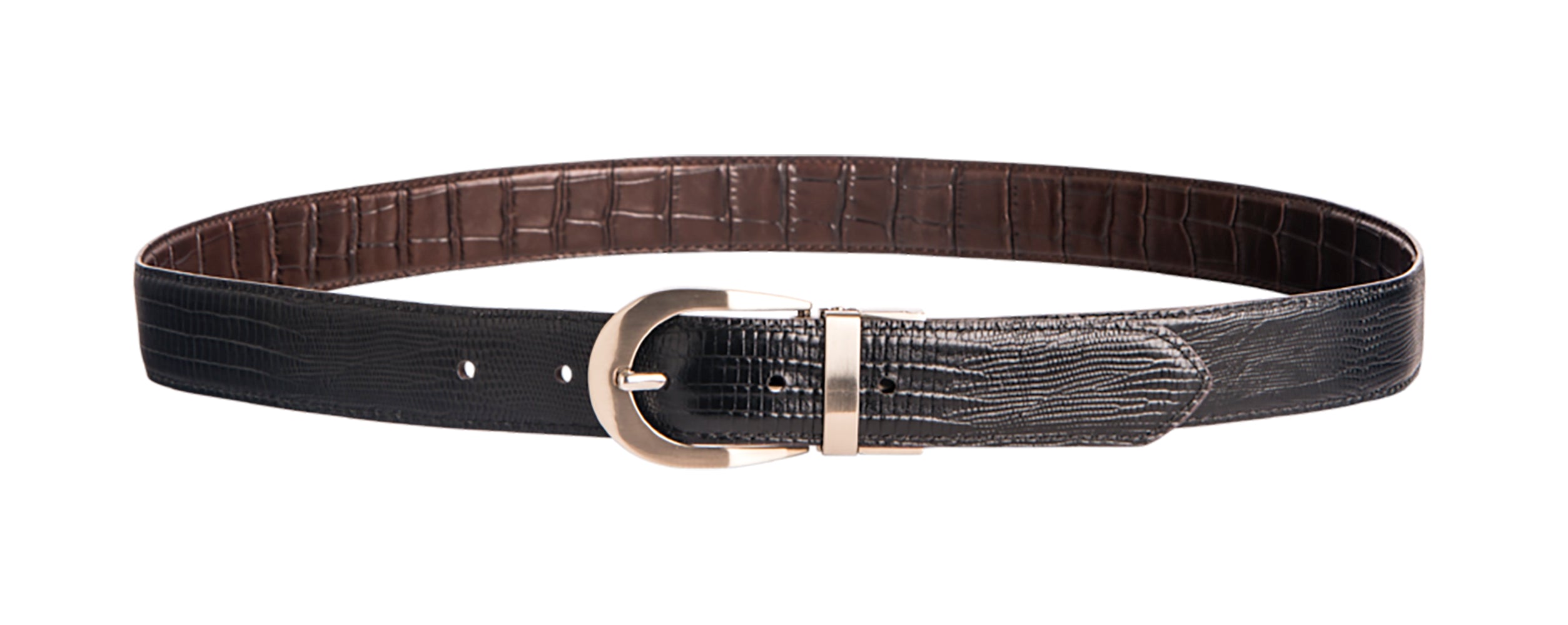 This Noble Outfitters™ Back-to-Back Reversible Belt is two looks in one! It’s the perfect accessory for any outfit regardless of hue. Made of quality, full-grain leather, it reverses from a lizard print to a crocodile print. Reversible buckle with logo detailing.