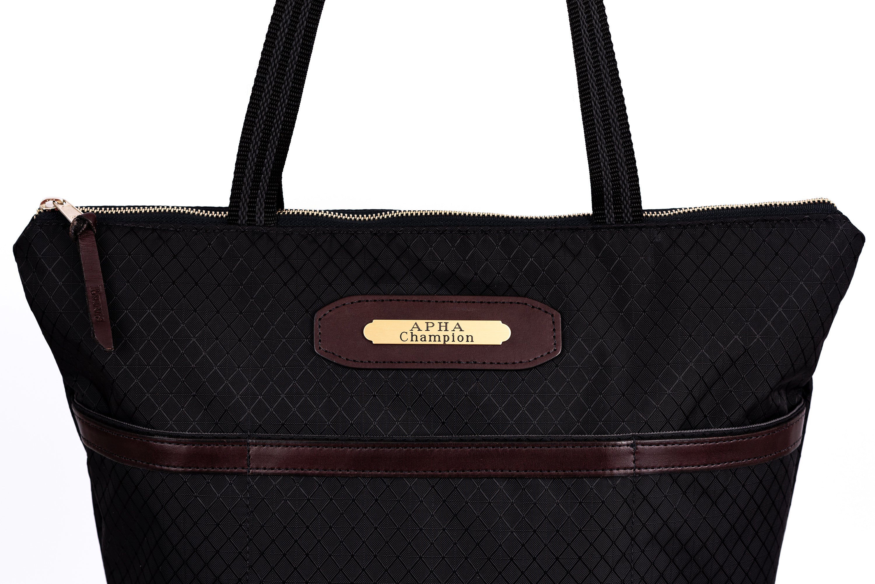 The Perri’s® Champion Collection Tote with Nameplate was created with horse show and year-end awards in mind. It features a leather accent to which a personalized nameplate can be attached.