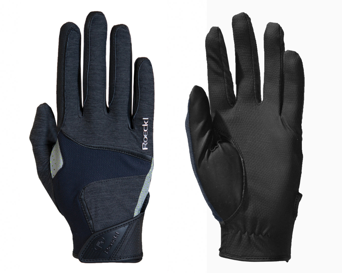 Exclusive Roeck-Grip synthetic material provides ideal grip that guarantees perfect tactility on the reins. A large, easy to use fastener runs from the palm to the backhand to secure the glove snuggly around the wrist.  Touch screen compatibility allows the use of a smartphone or tablet without the need to remove the glove.