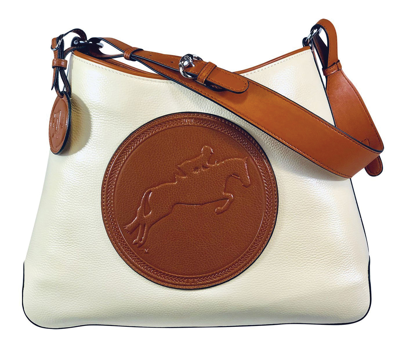 This stunning bag with adjustable shoulder strap keeps its shape over your shoulder. Available in 11 colors and four embossing options, this is the ultimate every day bag for horse lovers.