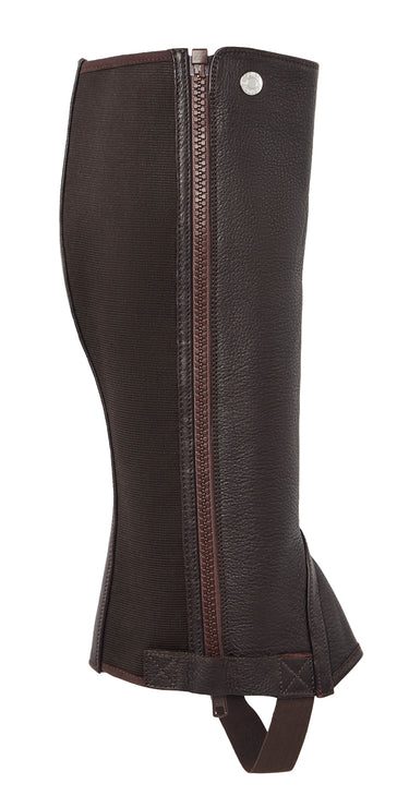 The DS Ready to Ride Half Chaps offer the best value in vegetable-tanned, full-grain cow leather that will only feel softer with use. Crafted with quality to ensure lasting wear, these half chaps are lined with a breathable, stretchy cotton/Lycra® fabric. Interior Equestrian Grip Strip™ is a stripe of silicone grip that prevents the half chap from twisting and sliding.