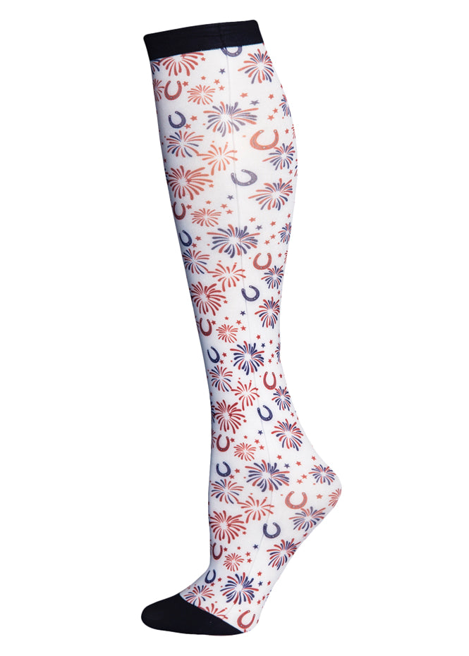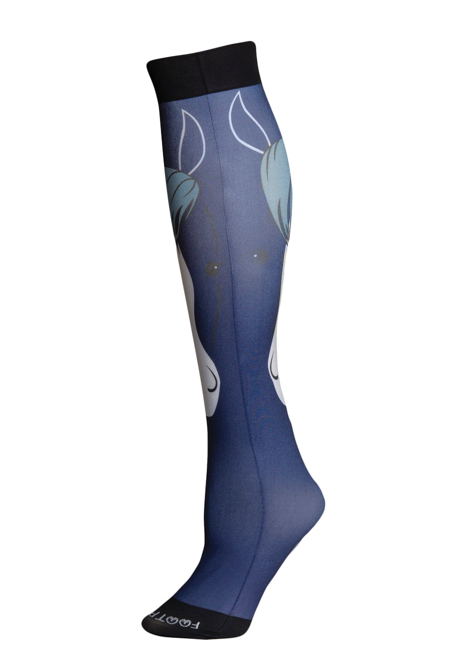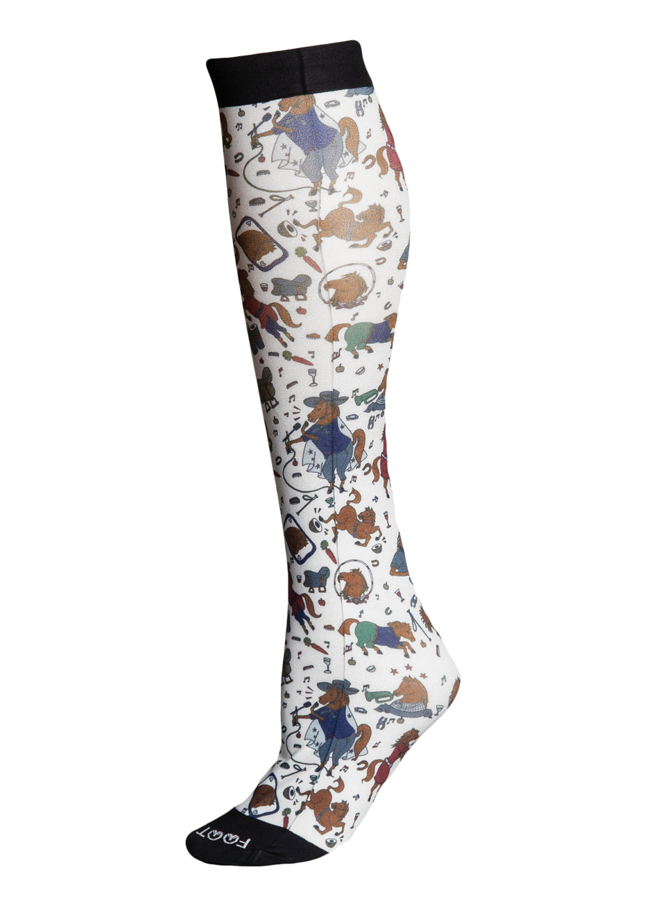 DS Footprintz are next-level riding socks fit for even the most serious riders. No-Peek Cuffs with a 1 1/2" wide band of black ensure the fun colors, patterns and graphics you love won’t show at the top of your tall boots.