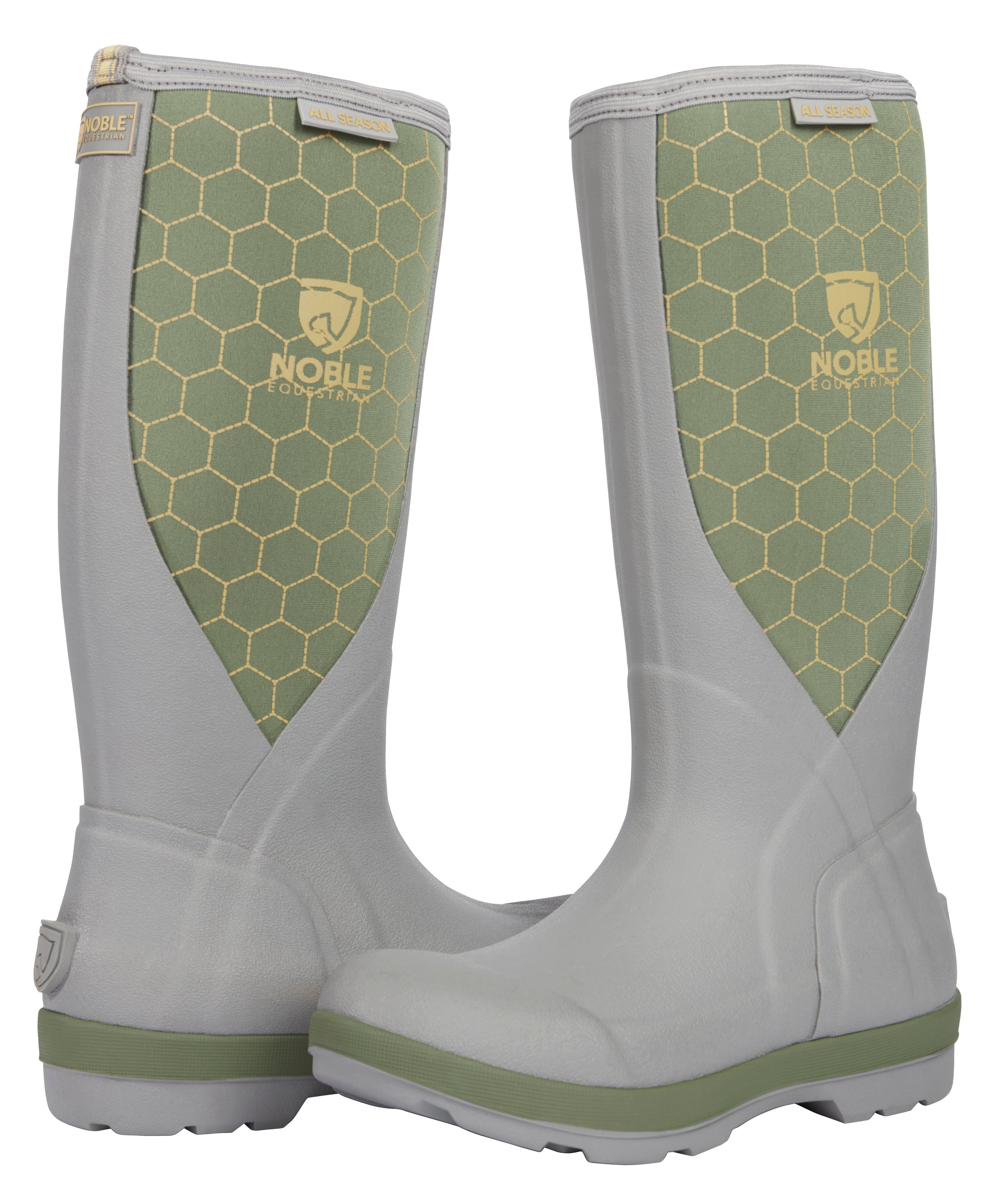 Tough against wet, mucky conditions and any weather, Noble Equestrian™ Ladies’ Tall Perfect Fit All-Season Muds® are 100% waterproof. This tall muck boot is comfort rated down to 20° Fahrenheit/-7° Celsius, yet won’t overheat feet in warmer temperatures. It is designed specifically to fit a woman’s foot, combining industrial-grade rubber with a 3.5mm insulating neoprene bootie and a breathable, moisture-wicking 3D Spacer Air Mesh textile lining. The molded rubber outsole is long-wearing, slip-resistant and non-marking.