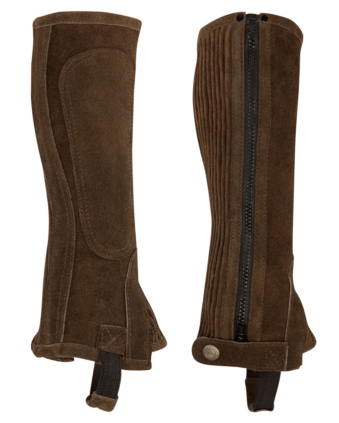Perri’s® Adults’ Zipper Half Chaps deliver great quality at an exceptional price. Crafted from supple suede cowhide, these half chaps feature reinforced inner legs and stretch panels. The panels provide a near custom fit and help the chap form to your legs to provide peak performance and comfort.
