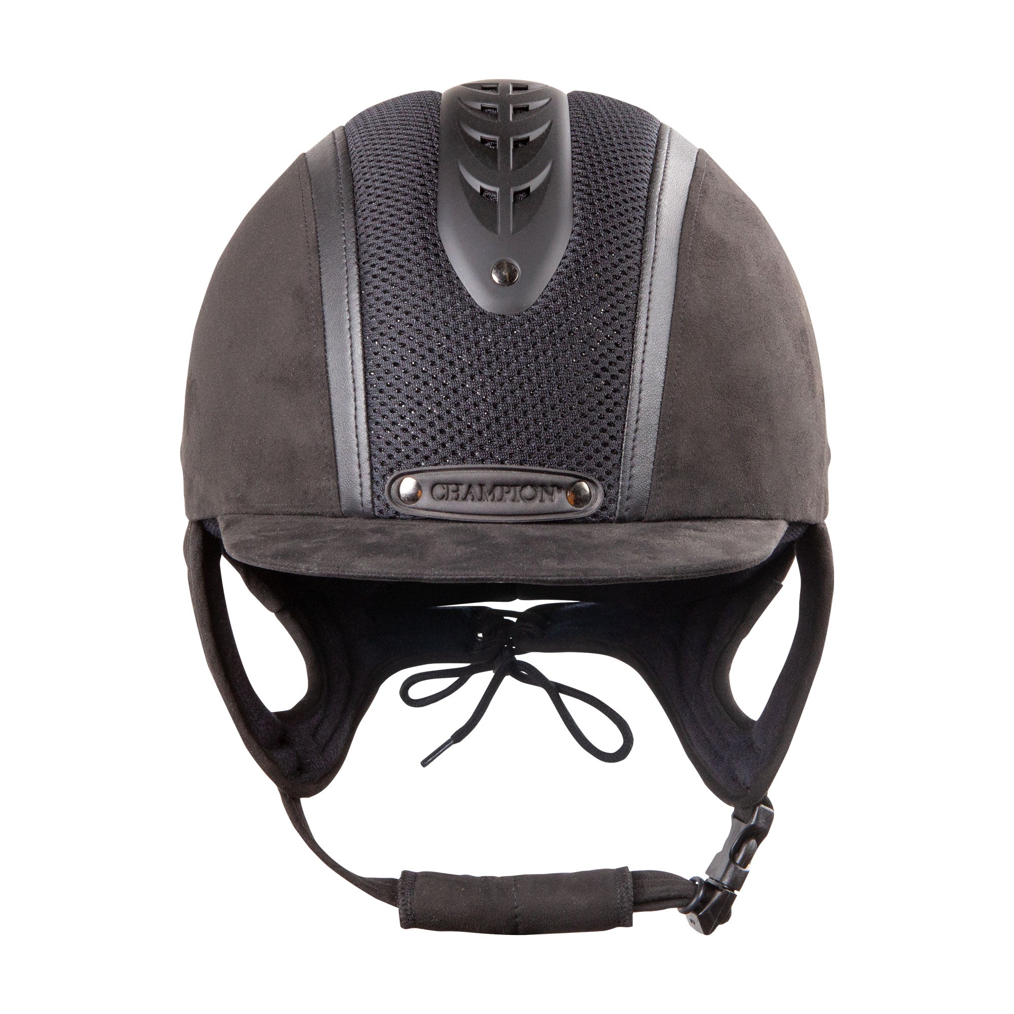 Get noticed in the hunter ring with this Champion® Evolution Puissance Hunter Helmet** and its subtle sparkle. Made with a synthetic suede finish and synthetic leather accents, this helmet has high-tech spacer material over a subtle metallic glitter at the center to provide a unique, but classy look in the show ring.