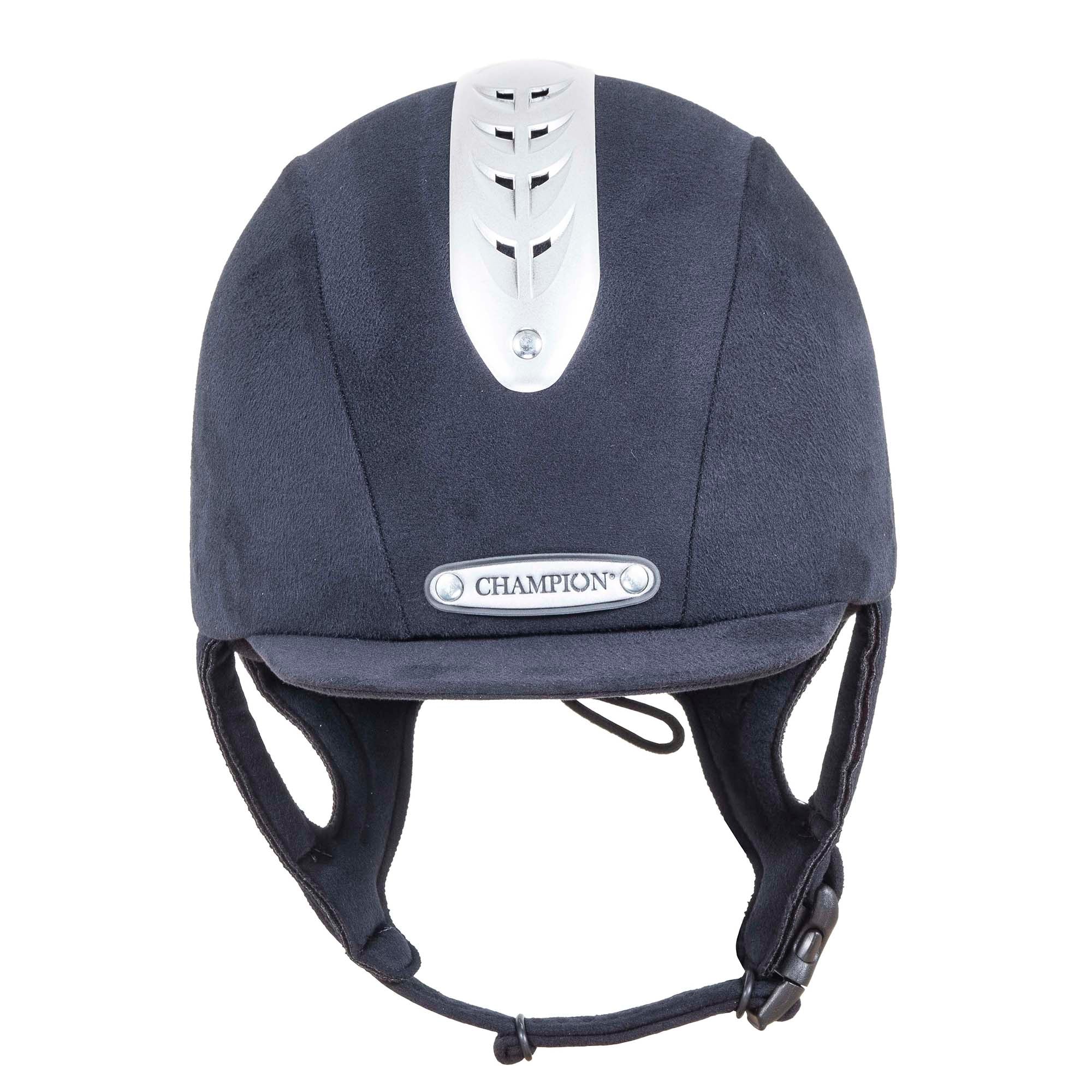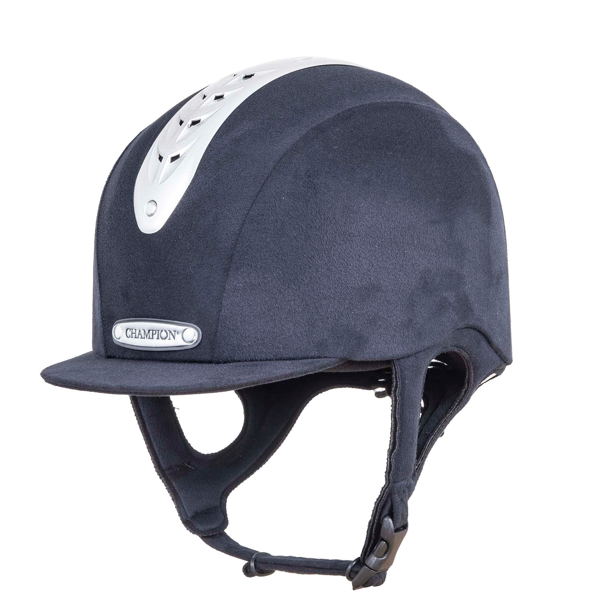 Champion® Revolve X-Air MIPS® Helmet** for those riders with a round head shape has a traditional fit that sits deeply on the head with a snug feel. Handmade in Great Britain, it boasts that latest in brain protection technology—the Multi-Directional Impact Protection System (MIPS) in a lightweight fiberglass shell.