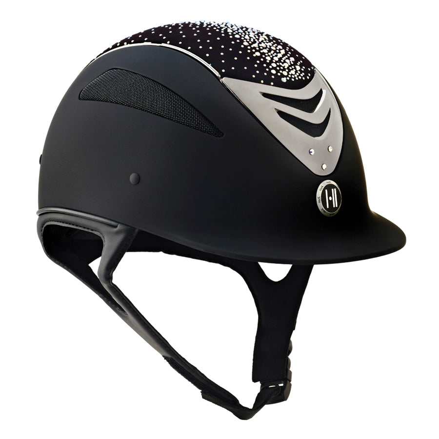 The One K™ Defender Celestial Helmet** adds an eye-catching sparkling rhinestone top, chrome stripes and vent to the popular One K Defender Helmet. The unique stones have an iridescent sheen that pick up light and become quite colorful.