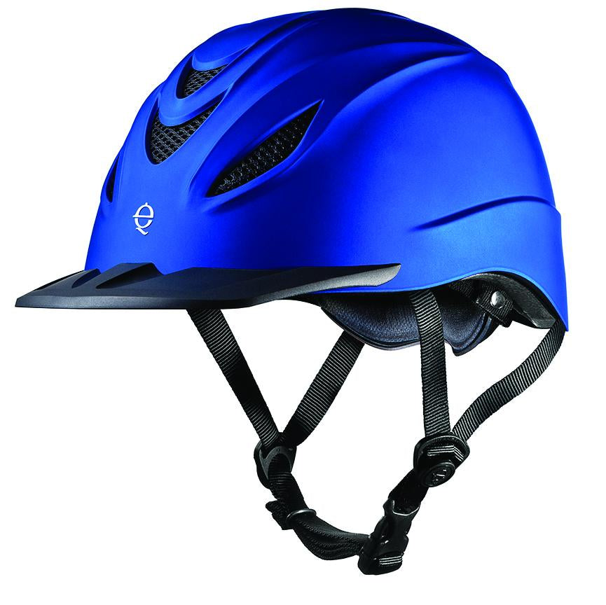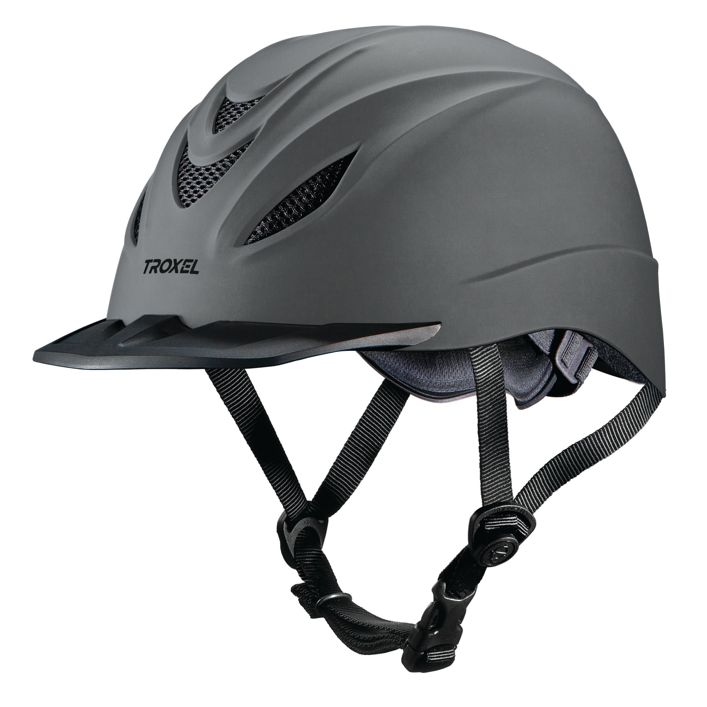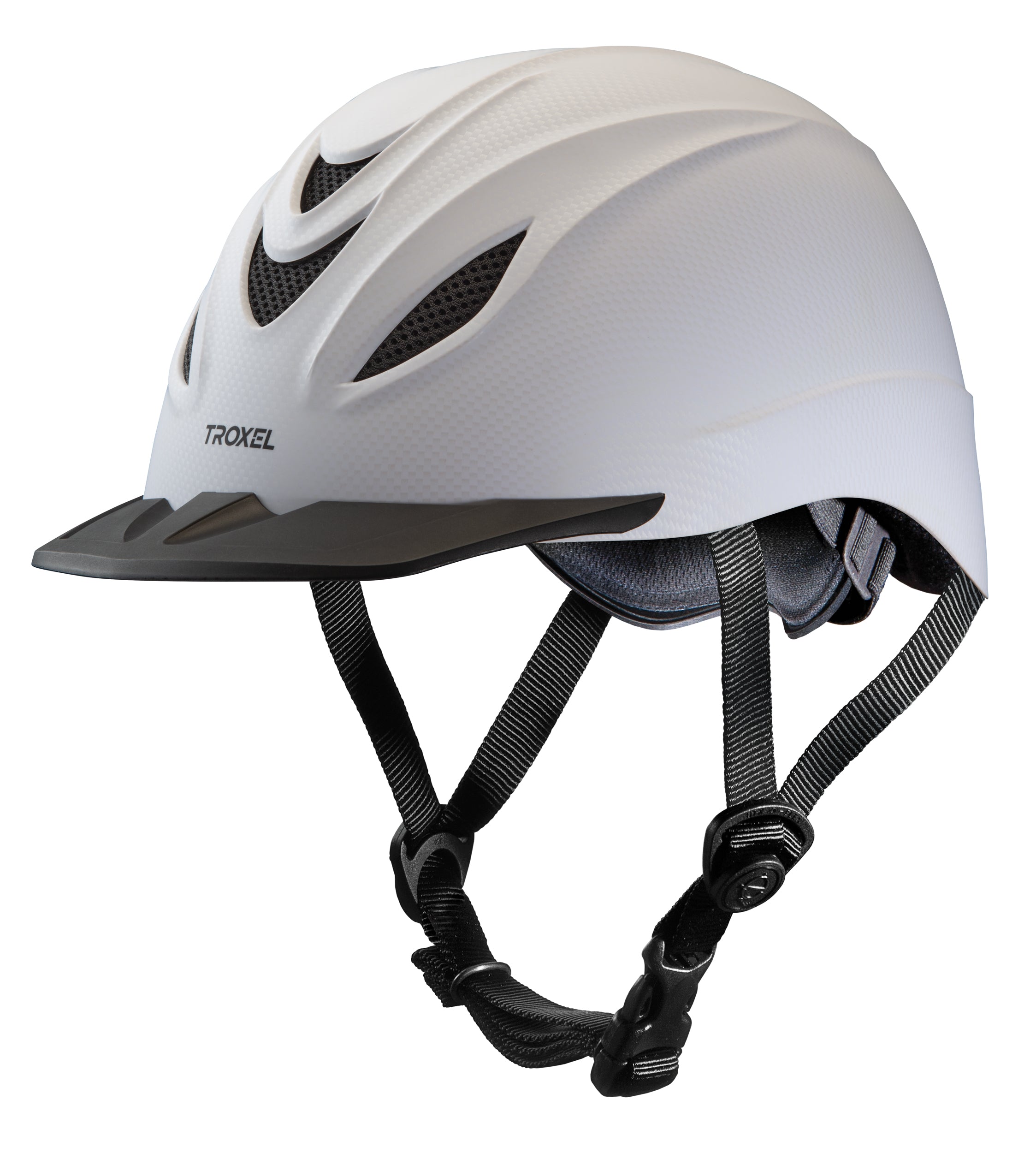 This Troxel® Intrepid Helmet** is an ultralight, low profile design created for active riders. The self-adjusting SureFit™ Pro comfort system adjusts to the size and shape of the rider’s head to offer an unmatched level of comfort. The geometric visor shape and vent pattern create a sleek silhouette for a flattering look.