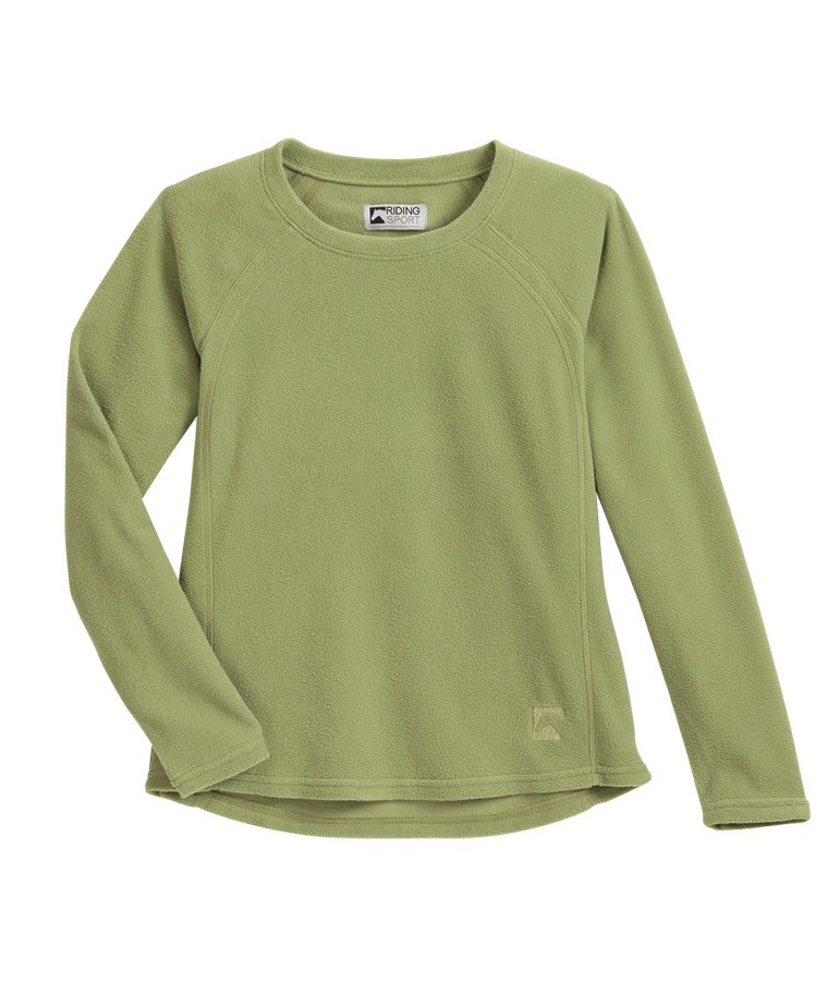 The Riding Sport™ Kids’ Colebrook Fleece Crew has an ideal weight for wearing as a top next to skin or as a mid-layer. Lightweight, breathable, soft fleece in a semi-fitted cut keeps the young rider cozy while she rides or mucks. Extreme stretch combines with raglan sleeves to ensure freedom of motion. Logo at hem.