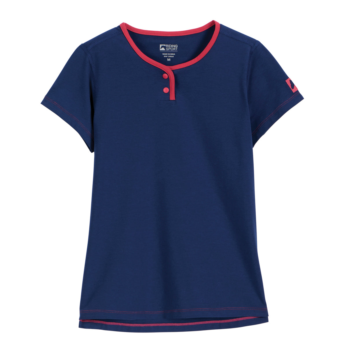 The Riding Sport™ Kids’ Haley Short Sleeve Shirt comes in mid-weight, cotton-rich fabric that is extremely soft, moisture-wicking and breathable. Built-in stretch lets the young rider move freely, while shrink- and pill-resistant qualities keep it looking fresh. Athletic styling includes a two-snap henley look, comfortable raglan sleeves and a slightly rounded back hem.