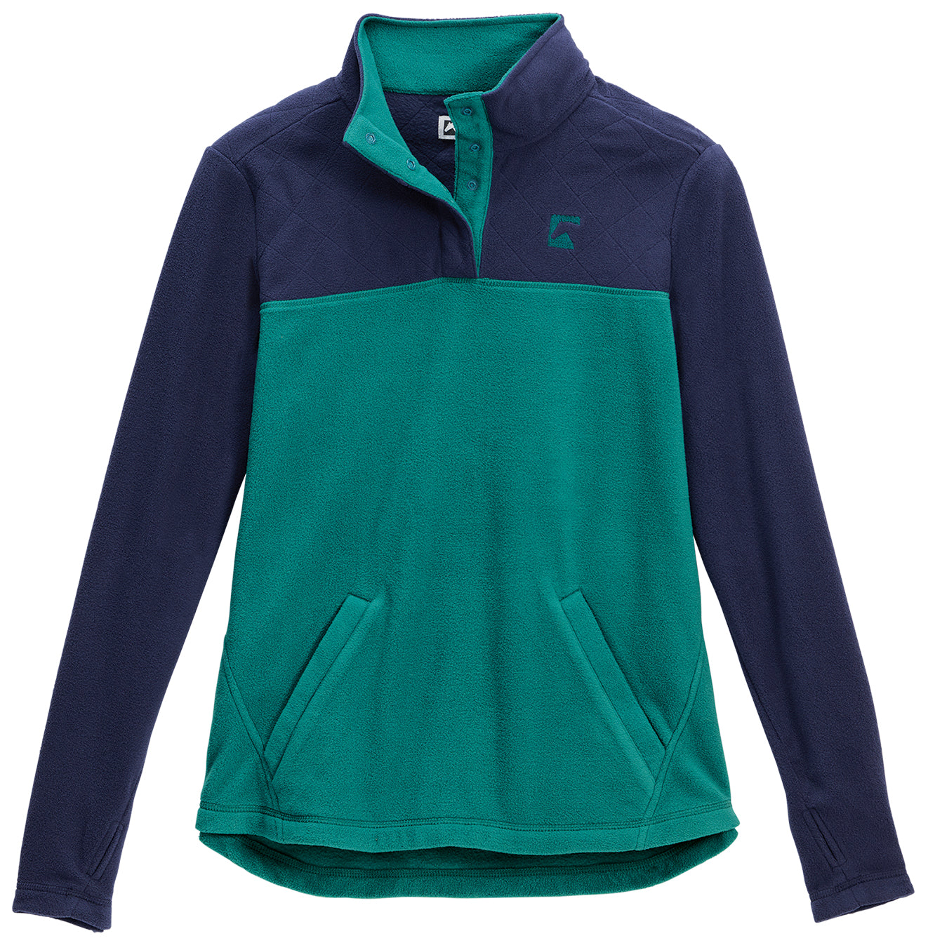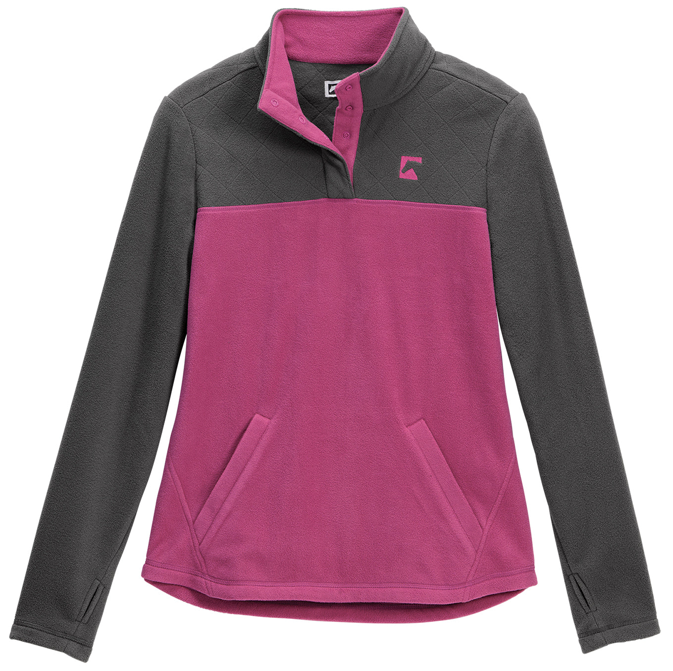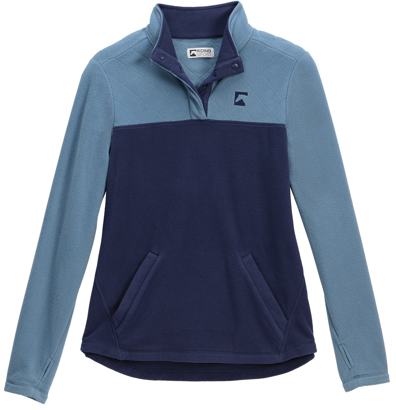 The Riding Sport™ Salem Fleece offers toasty warmth. Styled with a relaxed fit and snap placket, this versatile pullover is made of insulating, medium-weight fleece with a quilted design on the top. Kangaroo pocket warms hands and stores horse treats. Slightly dropped back hem extends coverage for while riding and grooming. Logo on chest.