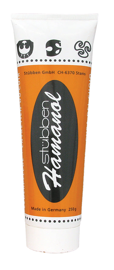 Ideally, Hamanol is recommended for use after cleaning with Stübben liquid pH-neutral saddle soap. Stübben leather care products were developed in cooperation with their tanners and are perfectly suited for Stübben leathers. Upright tube.