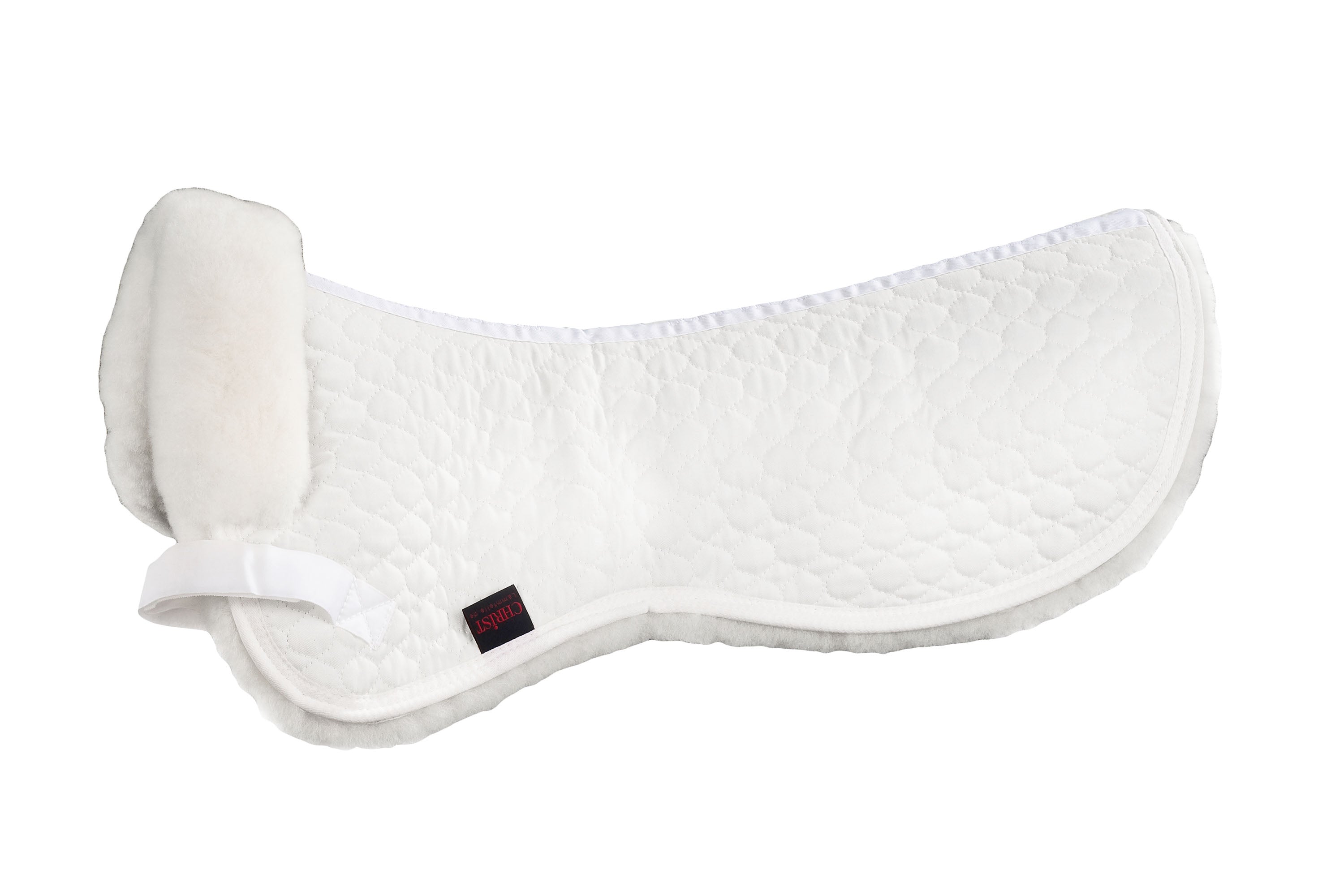 The Christ HorseDream Half Pad is a superior quality half pad with a high-withers cut, quilted cotton top and a genuine lambskin lining. The therapeutic importance of lambskin for the horse’s back is remarkable. It allows a saddle to be firmly fixed and shaped to the back and helps promote circulation, temperature balancing and saddle pressure. Naturally moisture-wicking, it promotes the horse’s comfort and aids in preventing back soreness.