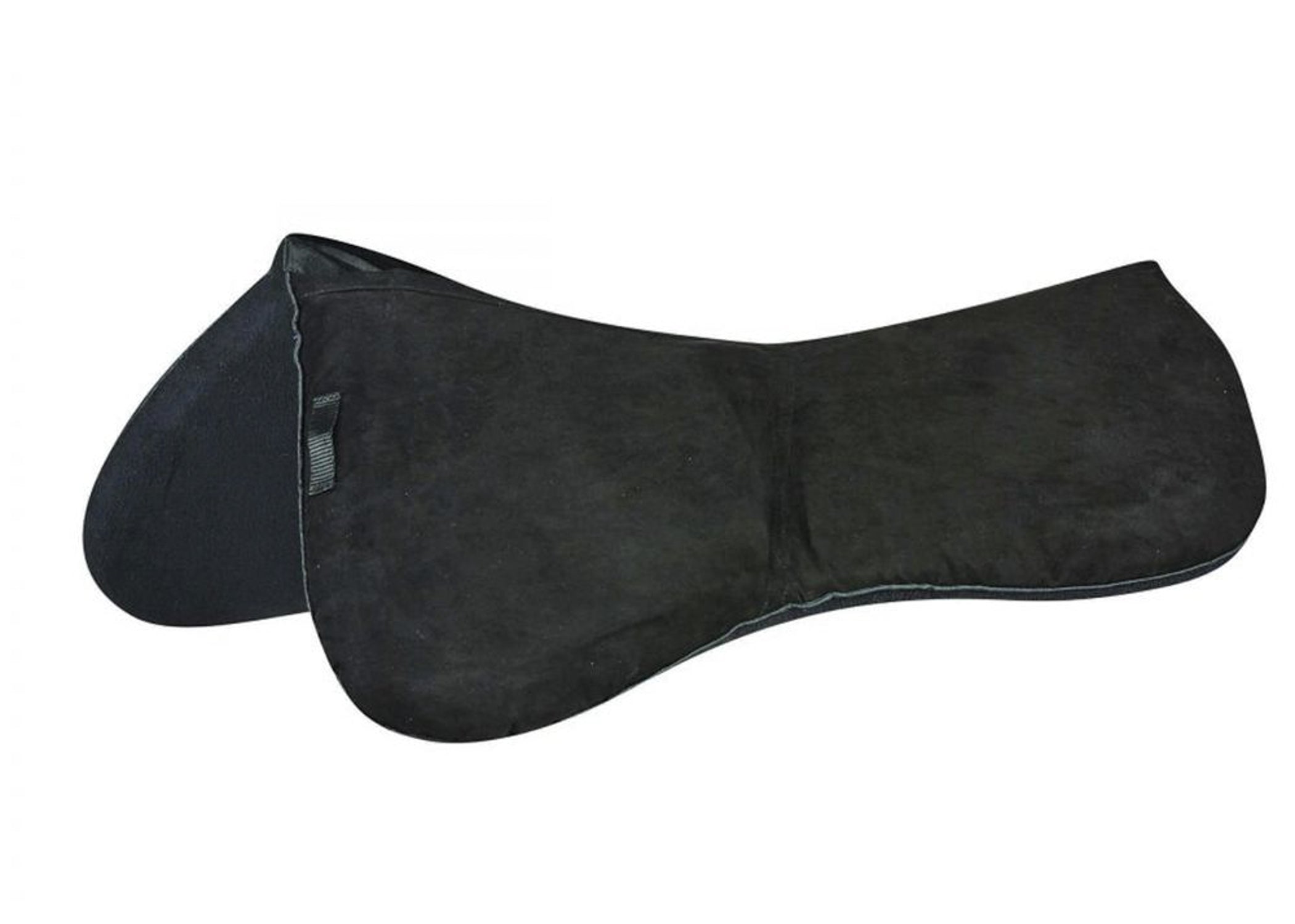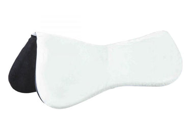 This half pad boasts a synthetic suede top, a fleece lining and a memory foam inner. Shims are also made of memory foam. A channel allows room for your horse’s spine.