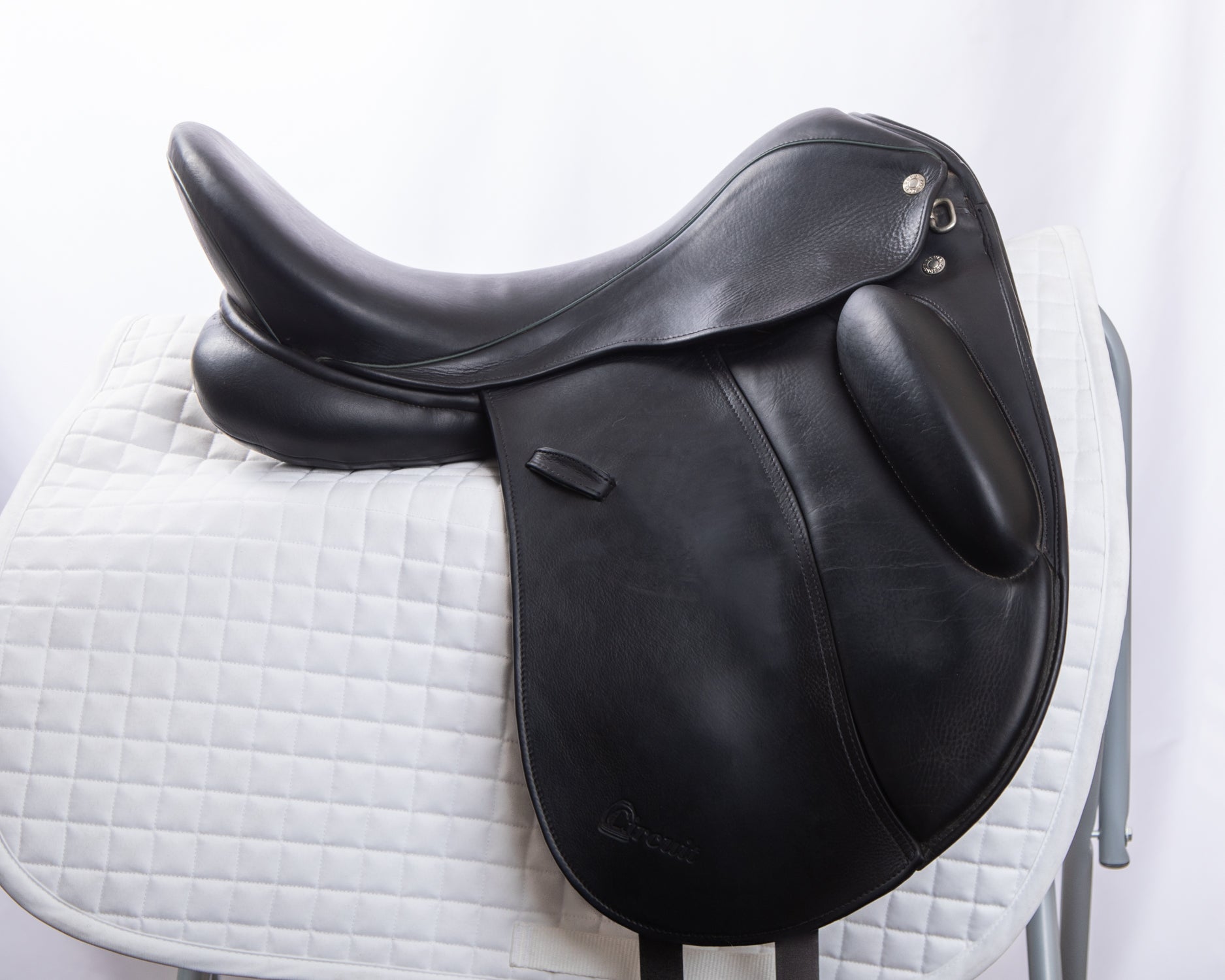 A double “V” billeting system allows more specific girthing depending on the horse’s conformation. Offered in a range of seat sizes and tree widths.