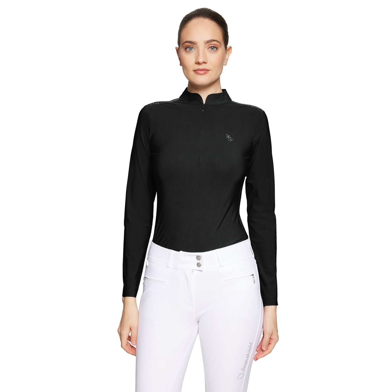 For riders looking for sparkling style and performance, the Samshield® Brunella Long-Sleeve shirt has arrived. Functional performance design with a high zip collar in breathable and stretchy fabric with an anti-pilling, wrinkle resistant finish. UPF 50+ provides superior protection. Samshield Crystal blazon on the collar and logo printed with crystal decor on the sleeve. Designed in an eco-responsible way.