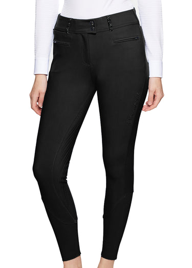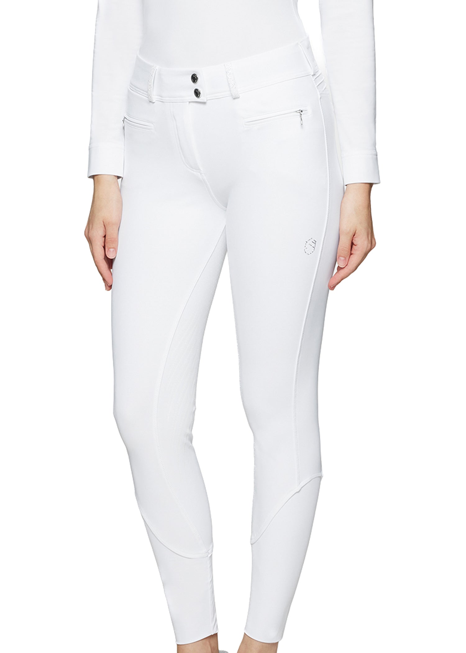 Samshield® Ladies’ Clara Premium Full-Grip Breech is for riders looking for a functional style with crystal embellishments. Second skin effect, durability and performance features are perfect for all disciplines. High-rise with an elastic waistband and pleats on the back. Samshield logo and Swarovski® crystals on the thigh, Ultra Fine Rocks decorations on the back pockets and back belt loop. Breathable and stretchy fabric is designed in an eco-responsible way to last over time with anti-pilling, wrinkle-resistant finish. Two zip pockets on front, invisible zip pone pocket and two pockets on the back. Compression zone on the calves for better blood circulation. UPF 50 protection.
