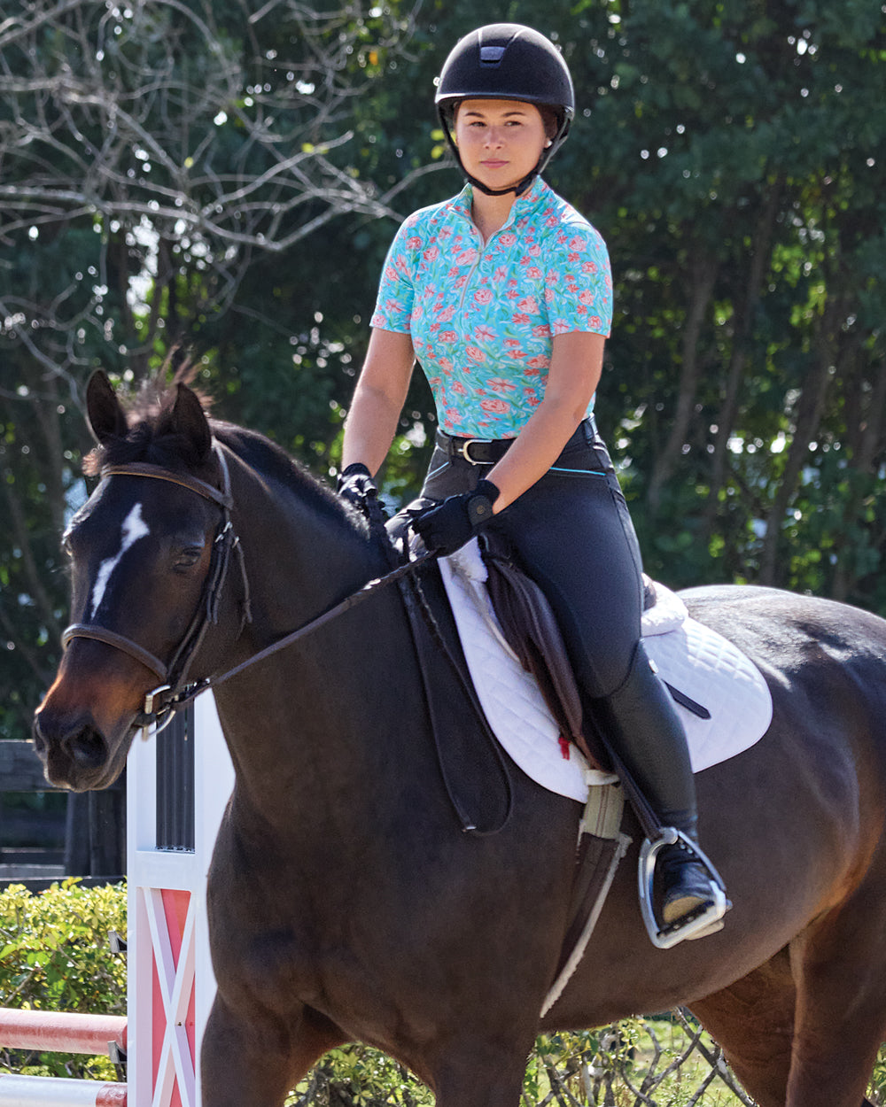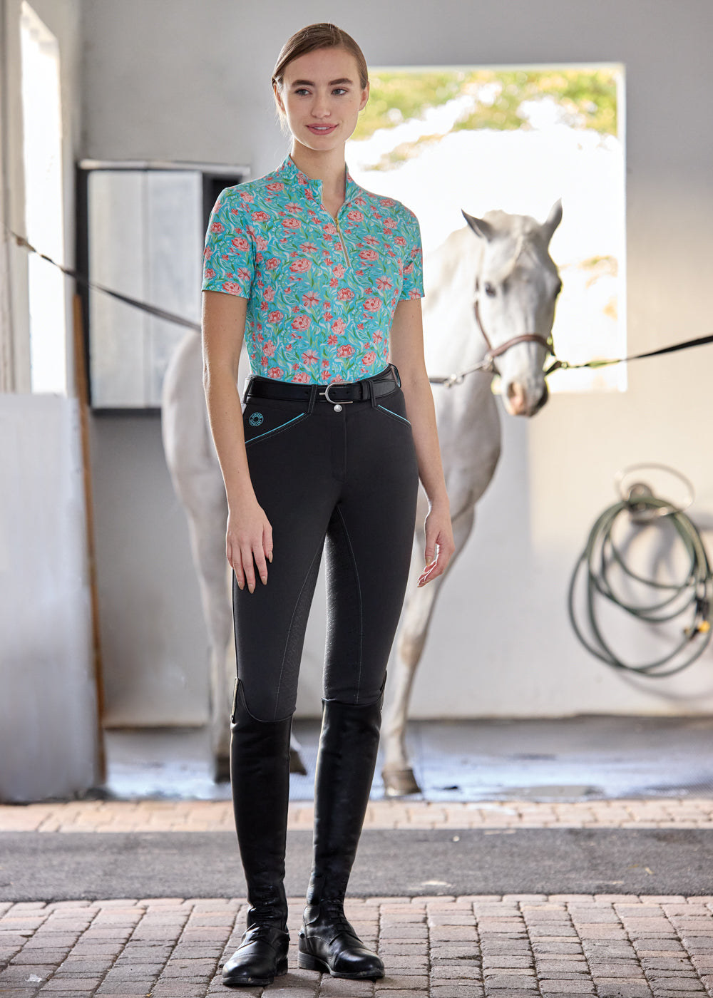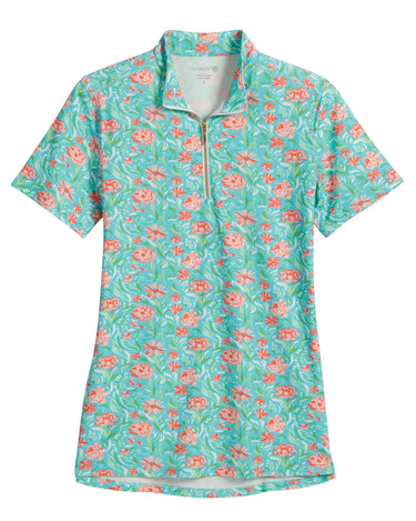CoolBlast 100 is lightweight, quick-drying and exceptionally breathable, with plenty of stretch for freedom of movement. The fun Pony Posy print features hidden horses throughout—see if you can find them! Quarter-zip placket has a matte-finish light gold zipper.