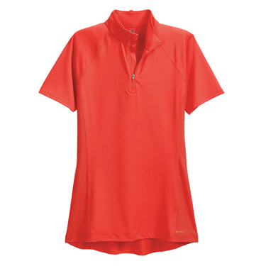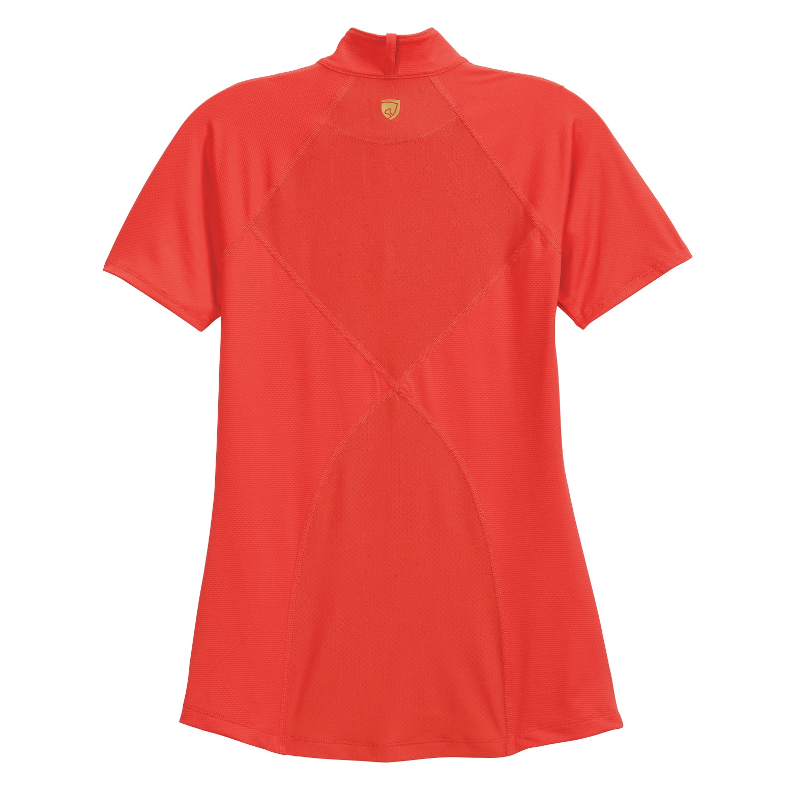 Ideal for schooling or showing, this fitted riding shirt has princess seaming to create a feminine fit. Flat seam construction and a tagless neck label provide softness. A reverse coil YKK® zipper, stock tie loop at the back neck and dropped back hem complete this versatile top.