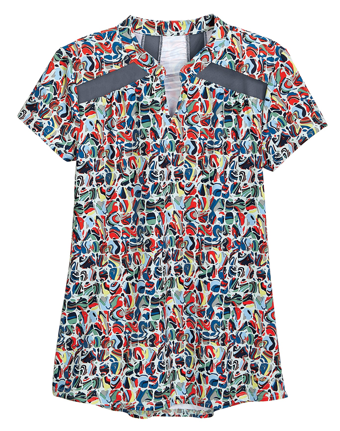 PRODUCT DESCRIPTION: Noble Equestrian™ Ladies’ Erin Mandarin Short Sleeve Print Top