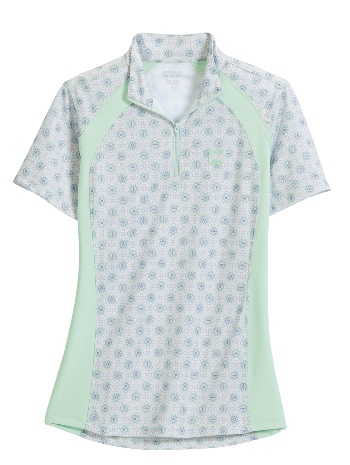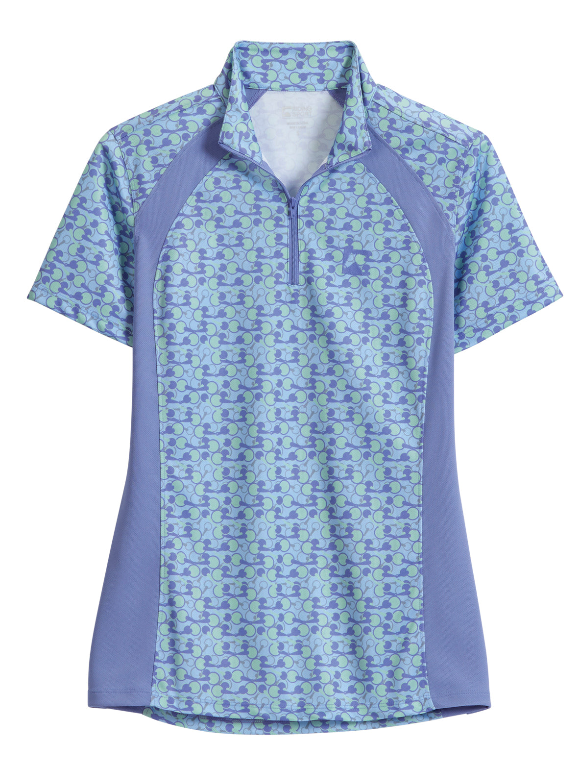 The Riding Sport™ Airflow Quarter-Zip Print Short Sleeve Shirt keeps you cool and comfortable. Extremely breathable, lightweight stretch fabric features a unique print with subtle equestrian motifs. The mock collar helps shield the back of the neck from the sun, while the front zip allows adjustable ventilation.