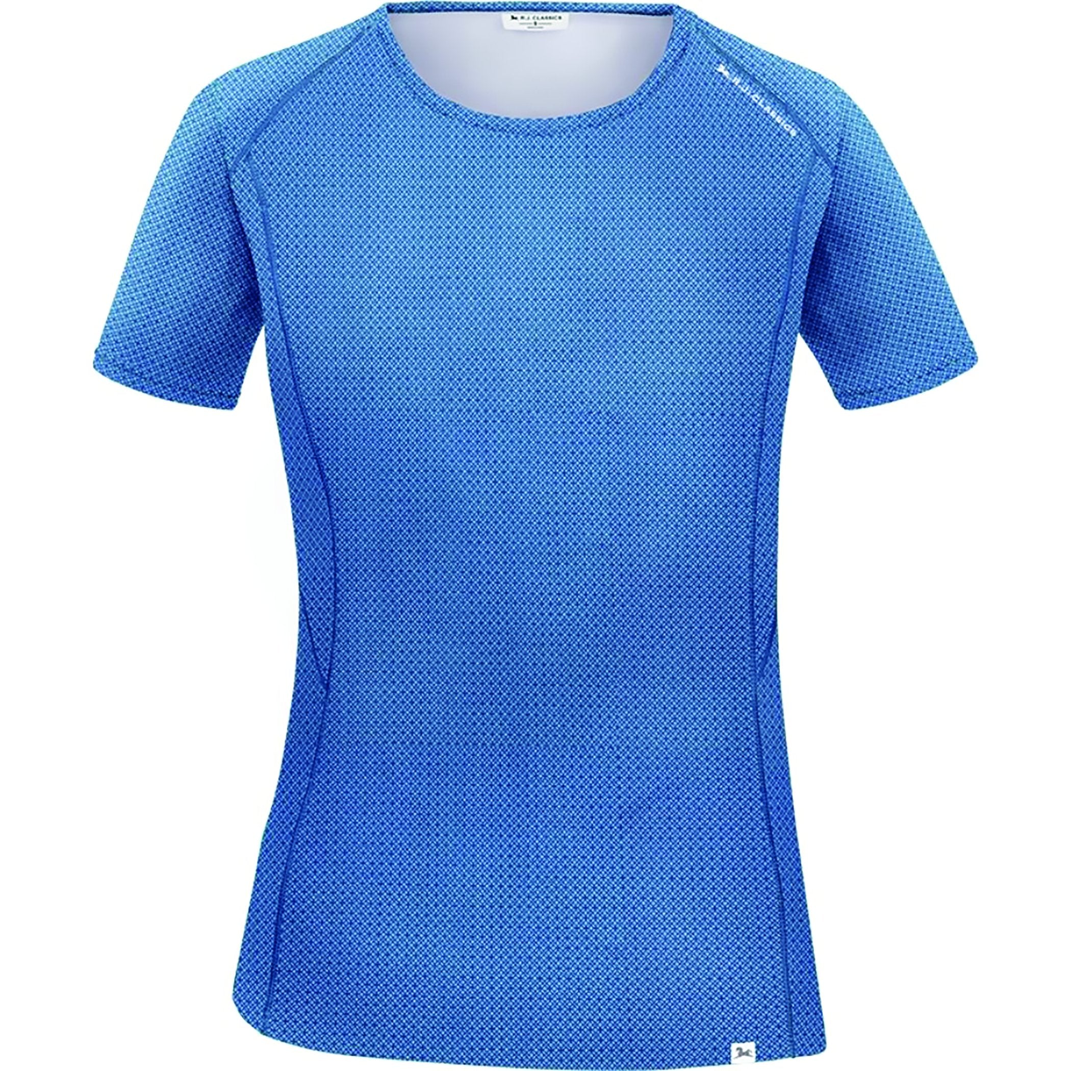 R.J. Classics Amy Short Sleeve Crewneck Shirt has sporty seam lines and a fit that sits close to the body. Luxuriously soft and stretchy cool-to-the-touch fabric makes this shirt a great choice for warm days. It wicks moisture, dries fast, lets you move freely and provides UPF 50+. A microprint adds a subtle, modern touch to your schooling outfits.