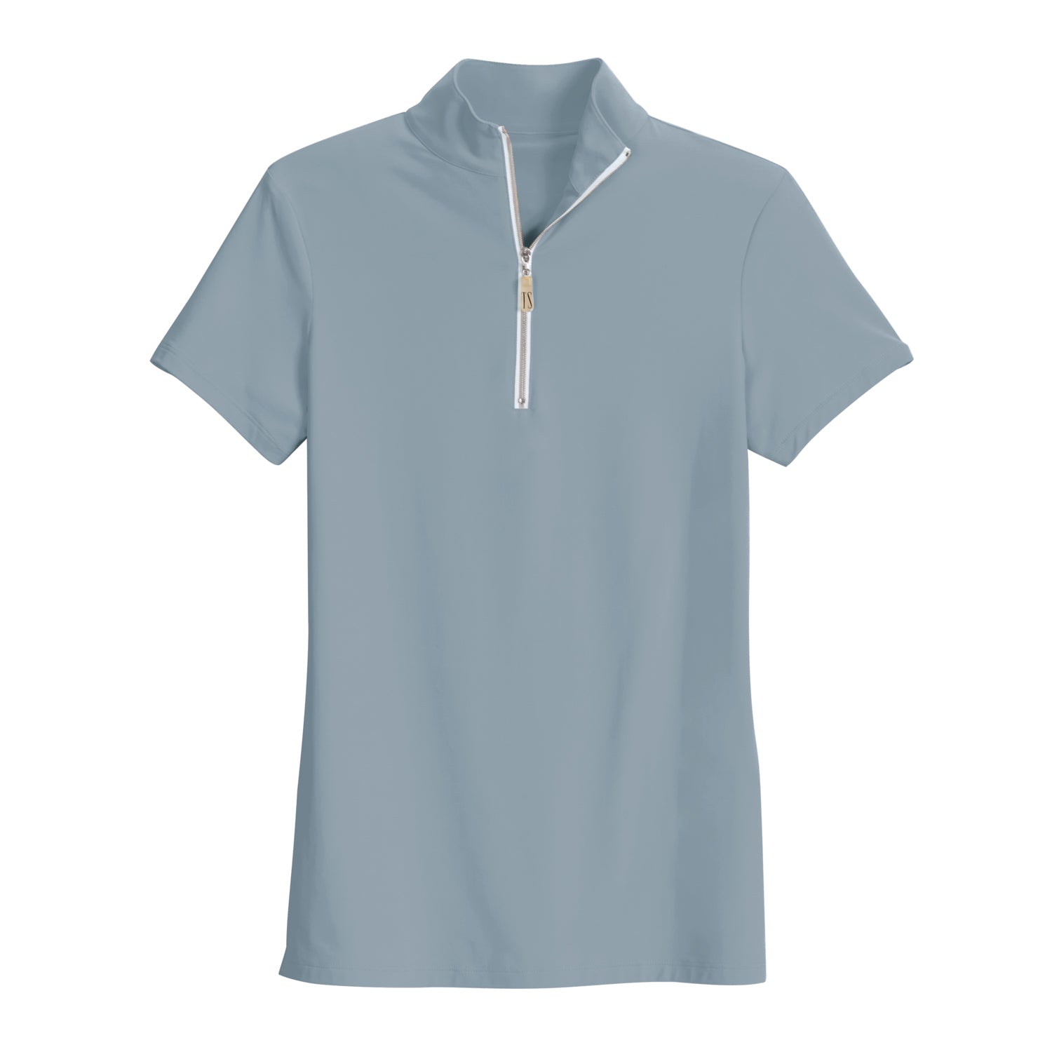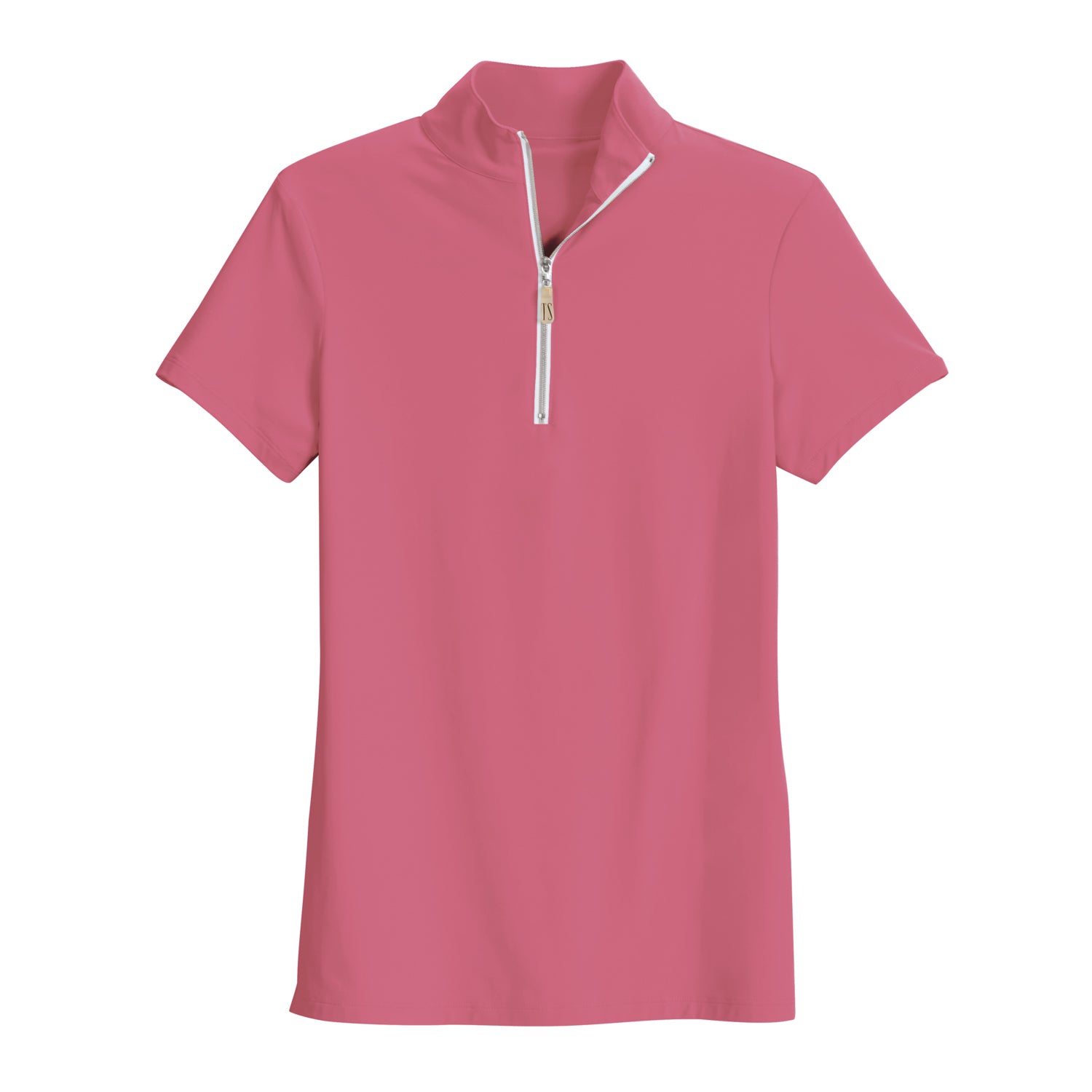 This semi-fitted riding top is lightweight, stretchy and moisture-wicking. A slightly brushed inner surface makes it feel luxurious on your skin. Styled for a polished look with a color-coordinated quarter zipper and stand collar.