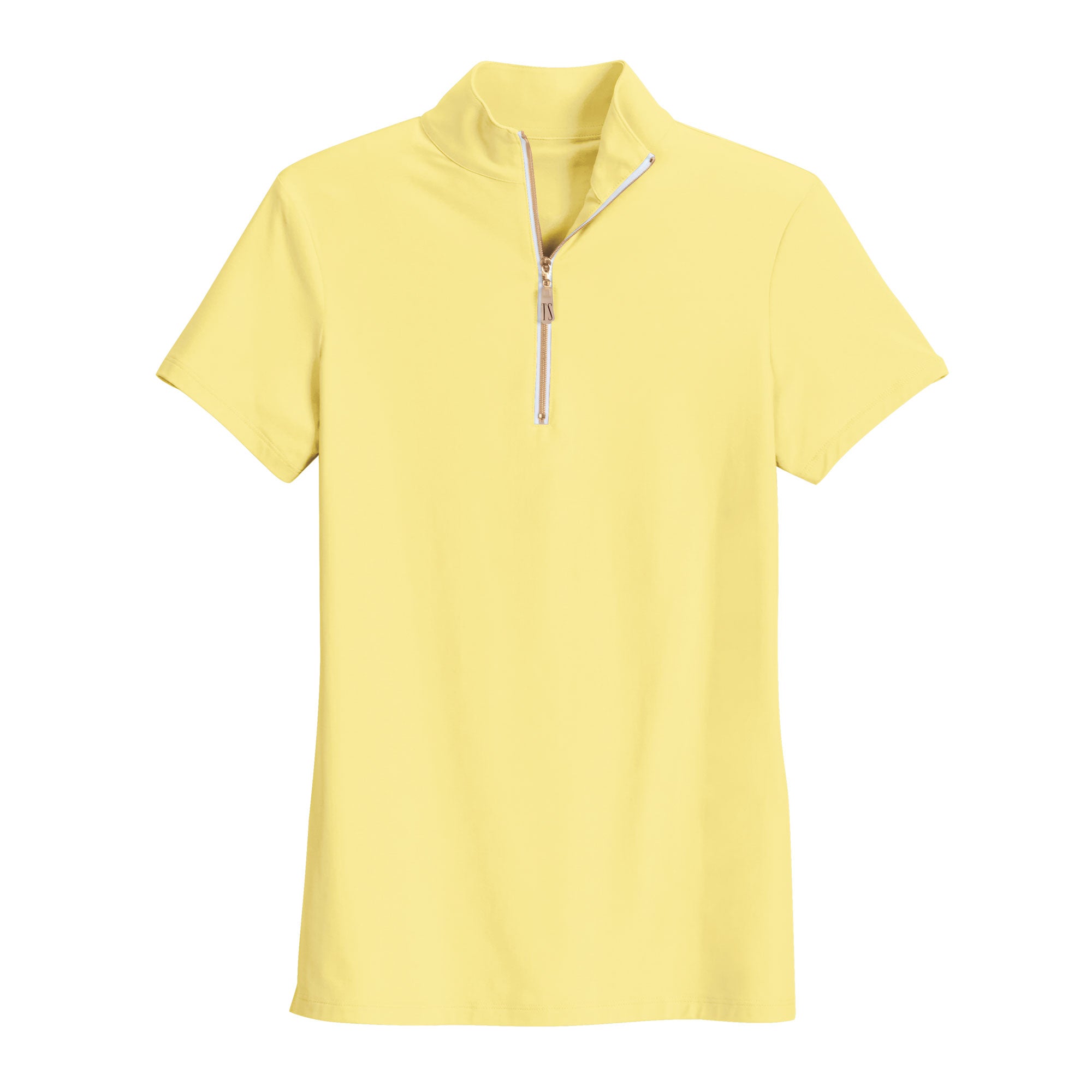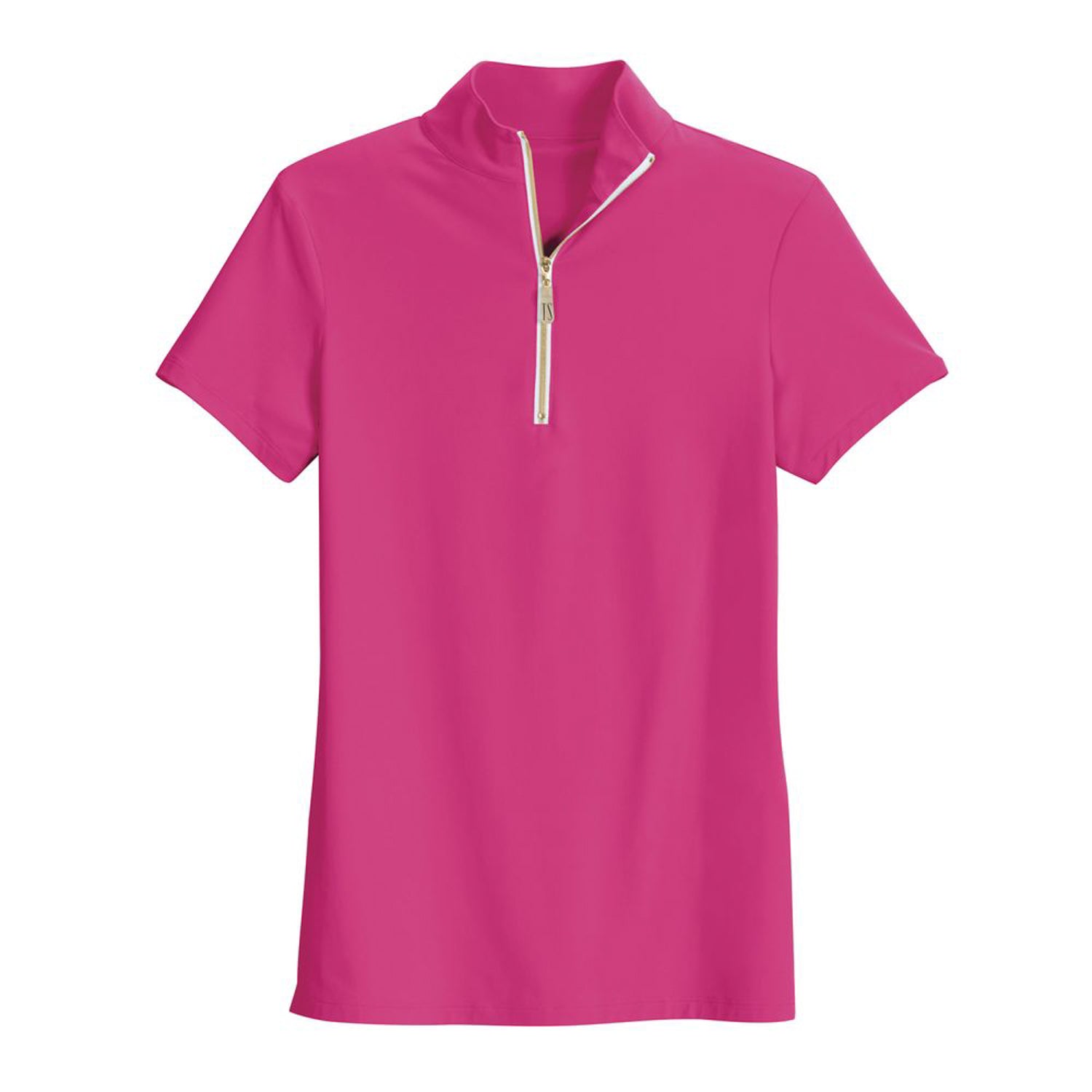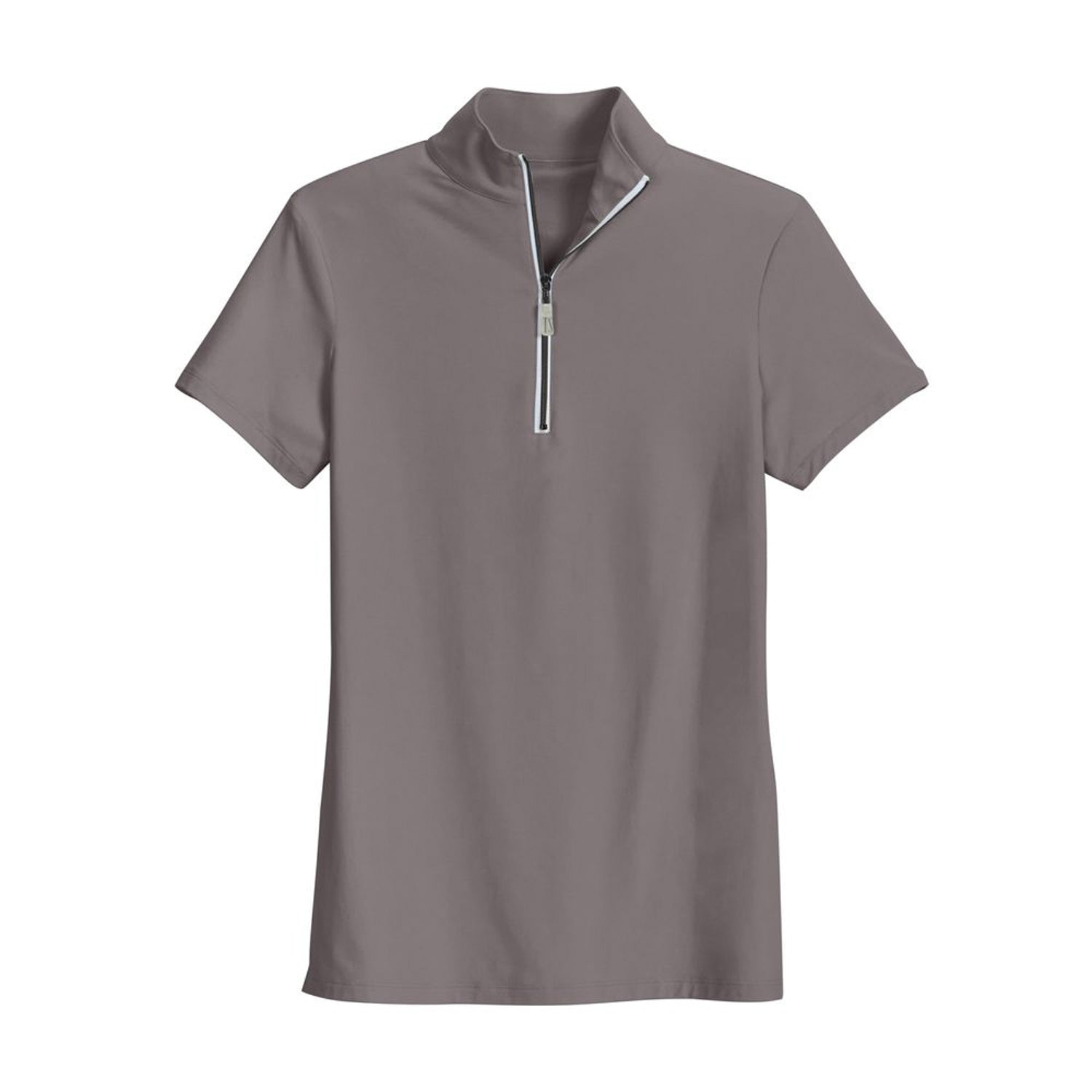 This semi-fitted riding top is lightweight, stretchy and moisture-wicking. A slightly brushed inner surface makes it feel luxurious on your skin. Styled for a polished look with a color-coordinated quarter zipper and stand collar.