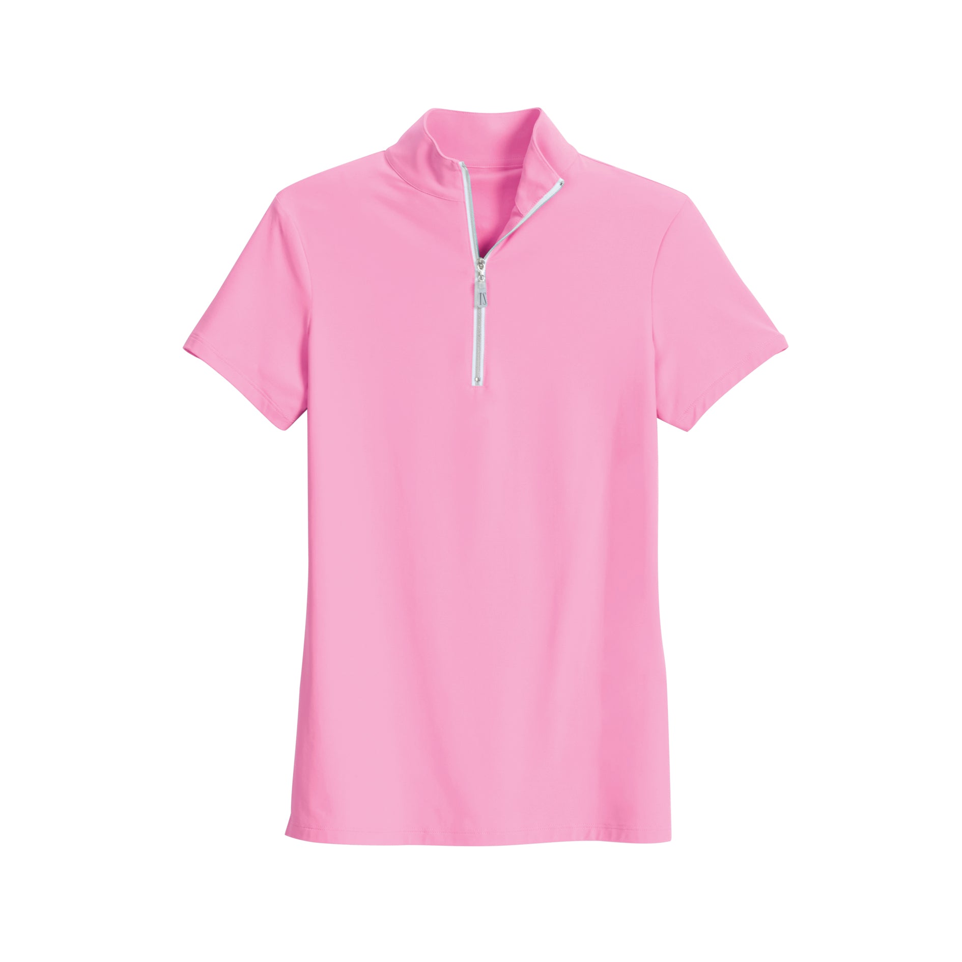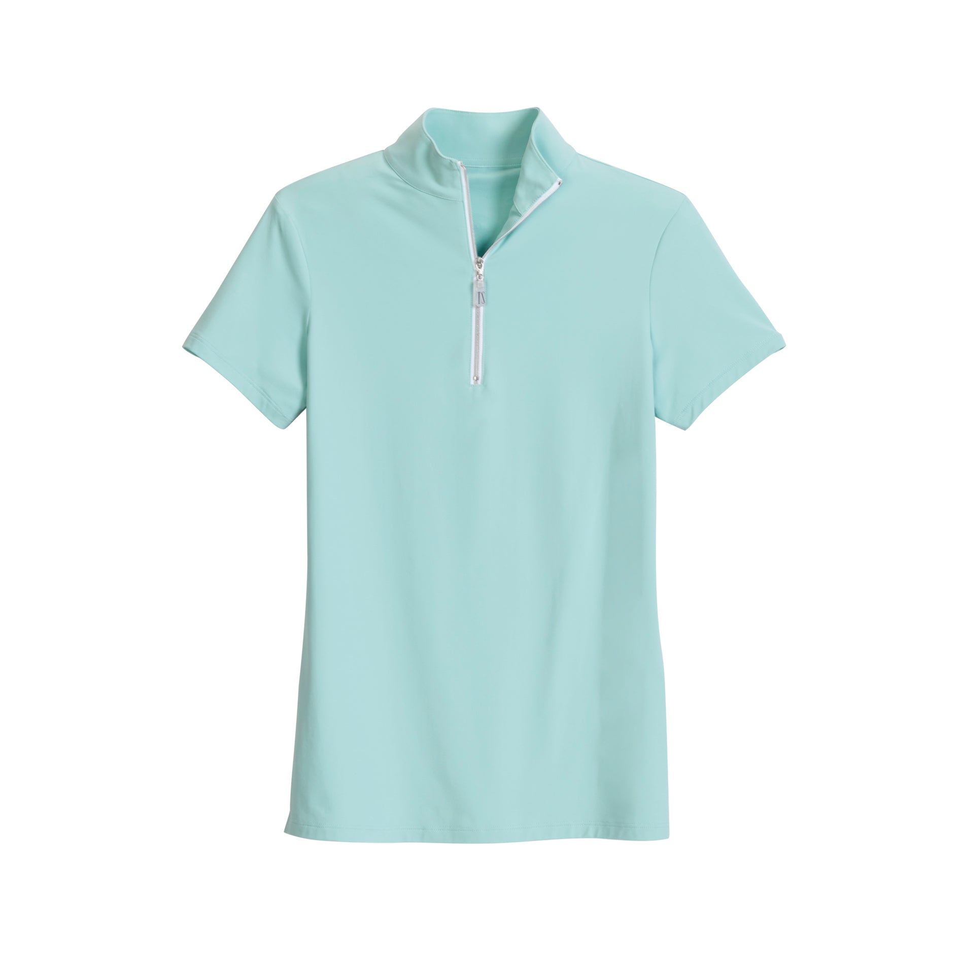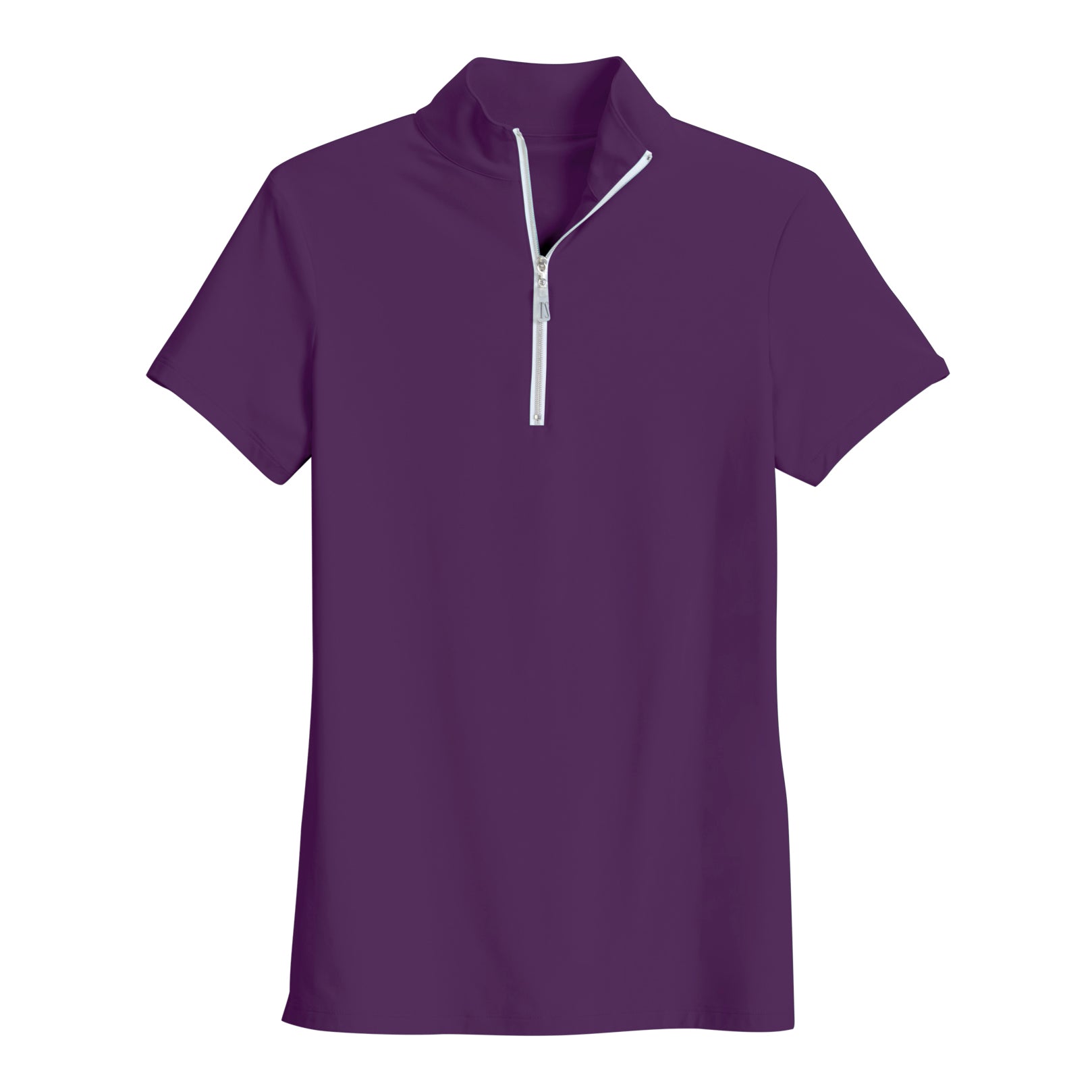 This semi-fitted riding top is lightweight, stretchy and moisture-wicking. A slightly brushed inner surface makes it feel luxurious on your skin. Styled for a polished look with a color-coordinated quarter zipper and stand collar.