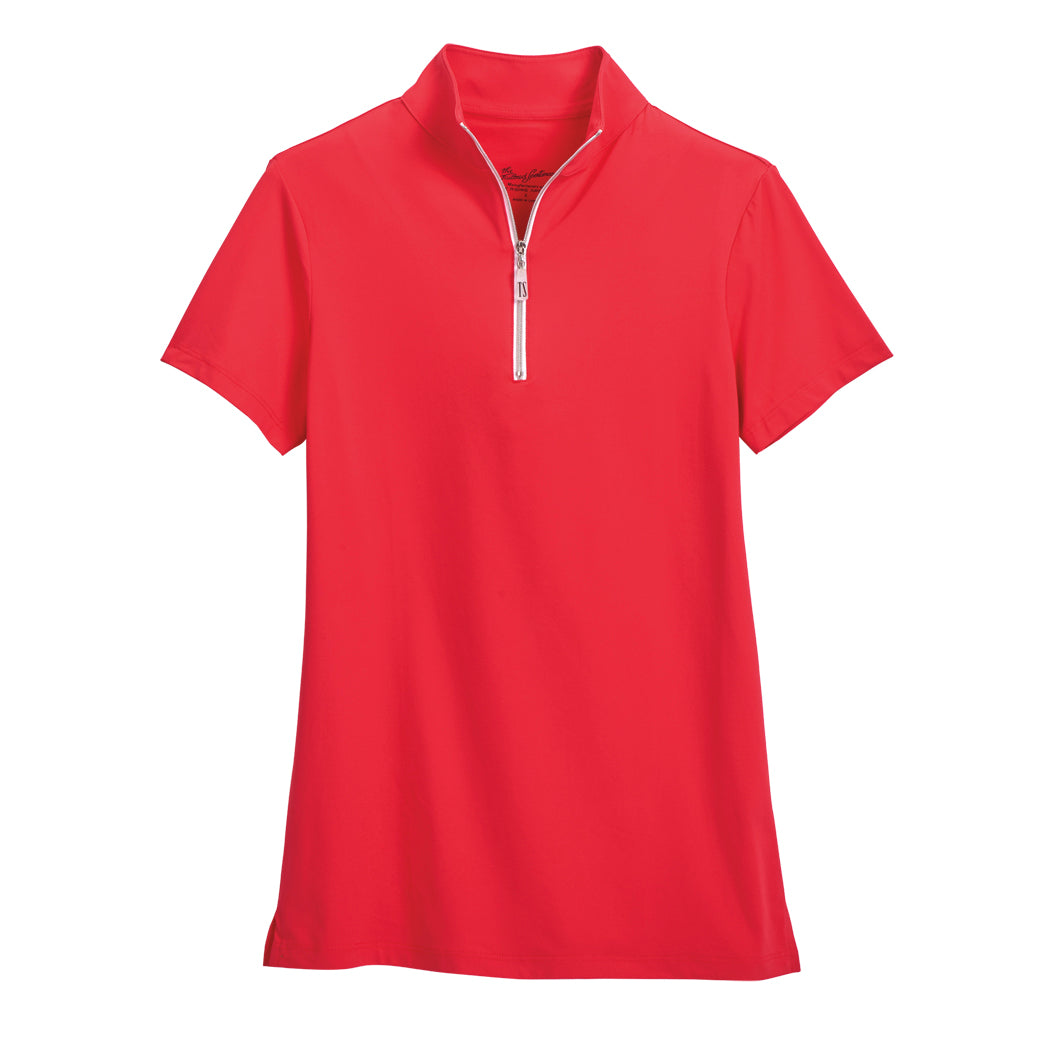 IceFil fabric is lightweight, stretchy and moisture-wicking and a great shield against the sun’s harmful rays. A slightly brushed inner surface makes it feel extremely soft against your skin. Styled with a quarter-zip front and an athletic yet feminine fit, this ladies’ riding shirt also protects the back of your neck from the sun.