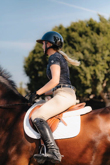 The TKEQ Kennedy Seamless Short Sleeve Top offers the comfort and performance that makes it a must-have for riders. Ultrasoft fabric rated UPF 30+ offers moisture wicking, breathability and four-way stretch. The contouring knit sits closely against your body; smooth knit fabric finishes the neckline and short sleeves.