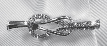 Beautiful silvertone Locket Stock Pin by Equetech has a lock loops design embedded with crystals. Safety clasp in back.