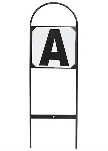 Highly visible metal Dressage Letters for the large arena include R, S, V and P. Both elegant and durable for competition and schooling arenas, these additional dressage letters insert easily into the ground or footing. Set of 4. Each is 27" high.