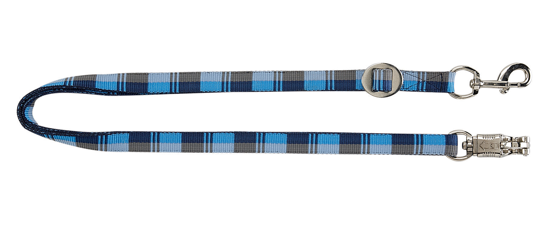 The DS Plaid Cross Tie in durable nylon webbing has a bull snap at one end and a panic snap at the other. The plaid pattern gives your barn aisle a touch of style. Adjusts in length from 42"-82". Each.