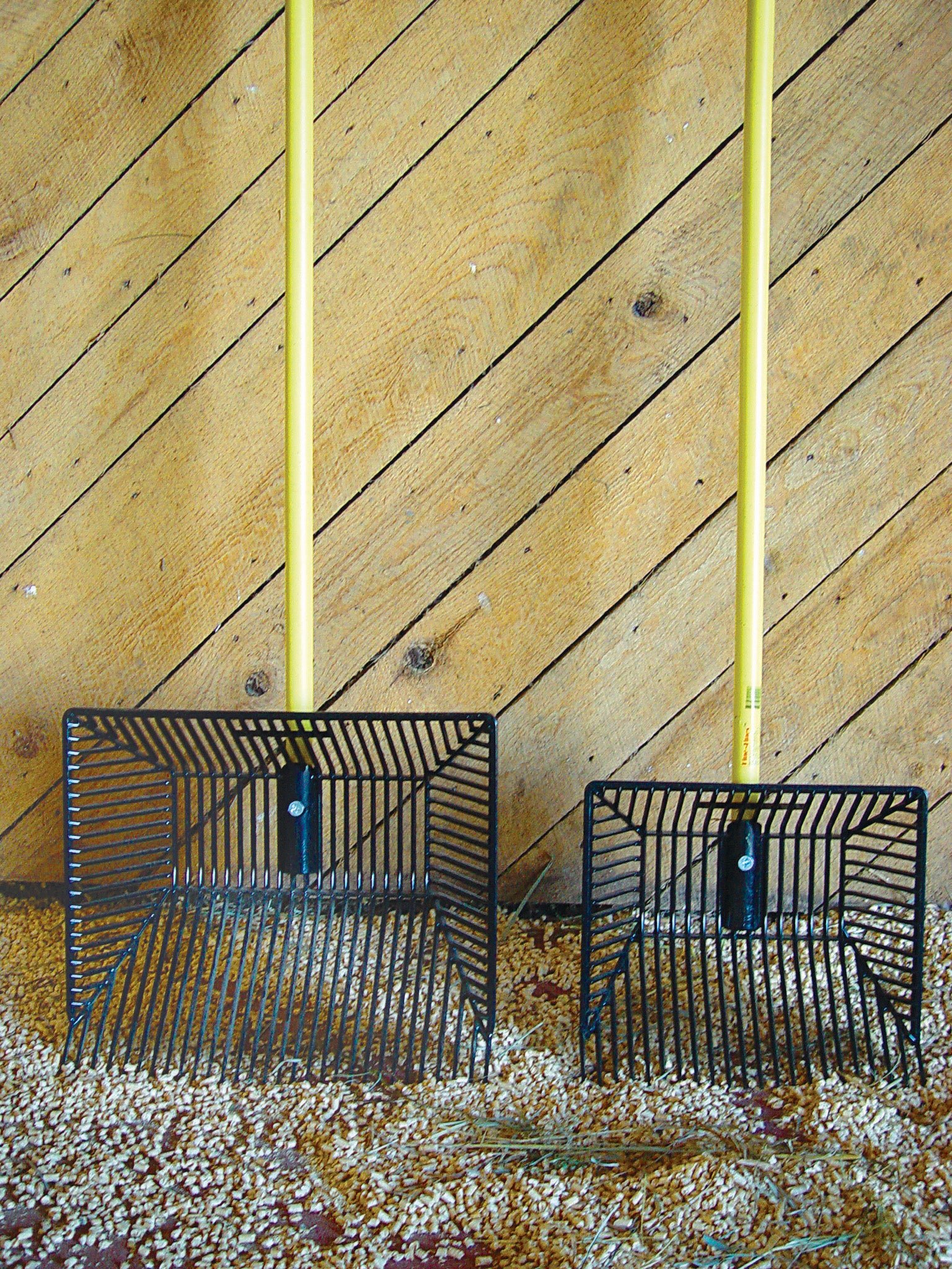 Designed to save time, the Fine Tines™ Fork features an angled basket with 30 closely spaced tines. This pitchfork sifts out even the small stuff and to reduce your stall picking time. Tough polycarbonate resists breaking.